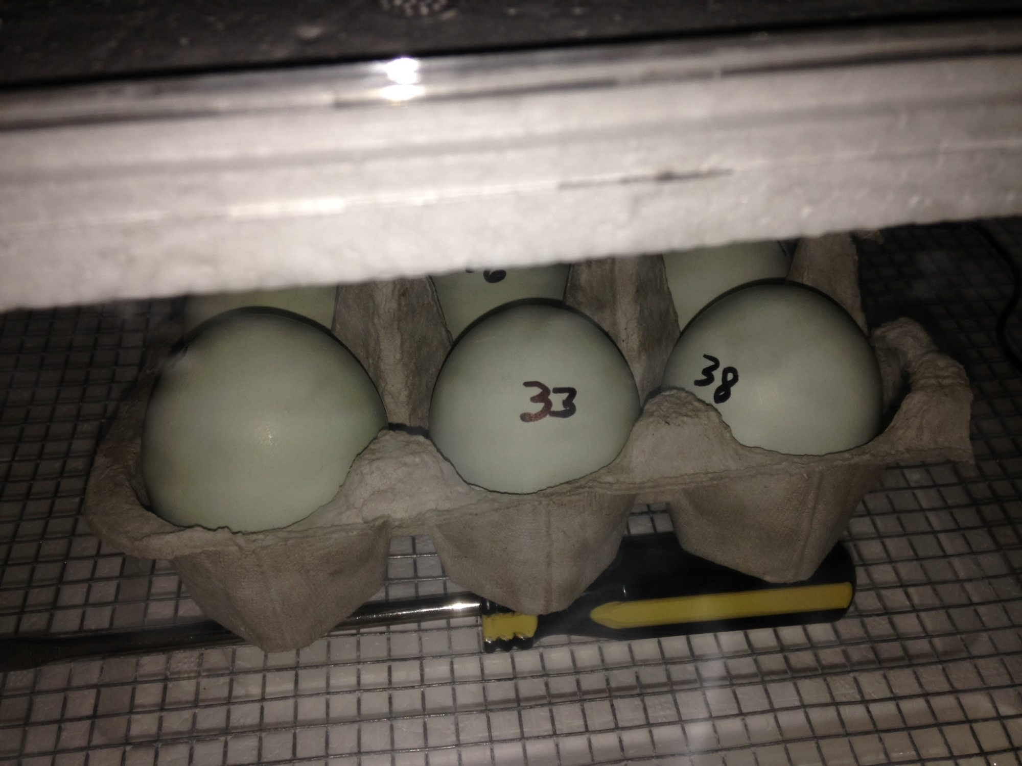 From left, Choc Orpington Channie, Choc Orpington Tania, with her big mouth open, on ladder Rhodebar Anna Lisa, Rhodebar Stephanie, and Cream Leghorn Nelly, the smallest sweetest chick.