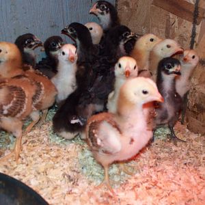 Black Java & one chick with the mottled gene