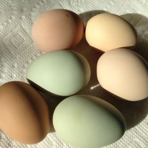 10/15/15 - 5/7 of the pullets are now laying, we have 2 non-brown egg layers and 3 brown egg layers.