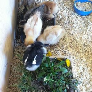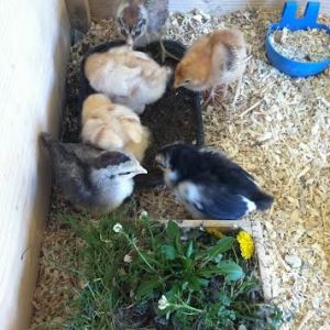 All the girls are excited for fresh dirt and the last two girls finally dust bathe in it.