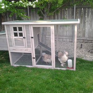 This spring they are moving to a tougher warmer in winter cooler in summer coop with a fenced yard with spire roof. This roof in the yard they are in now I have to knock snow off every storm. Slowly figuring out how to make things easier