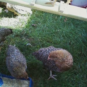This spring they are moving to a tougher warmer in winter cooler in summer coop with a fenced yard with spire roof. This roof in the yard they are in now I have to knock snow off every storm. Slowly figuring out how to make things easier