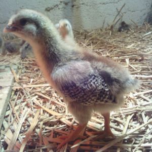 Silver Penciled Plymouth Rock chicks at 2 weeks old.