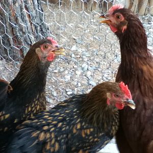 So I also have two RIR I think one is a rooster because her comb is bigger than the other....anyone have any suggestions on this one?