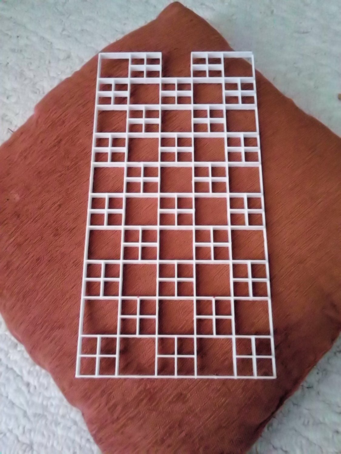 The diffuser panel with egg size squares punched out. I made a boo boo up top and broke edge of square out....whoops