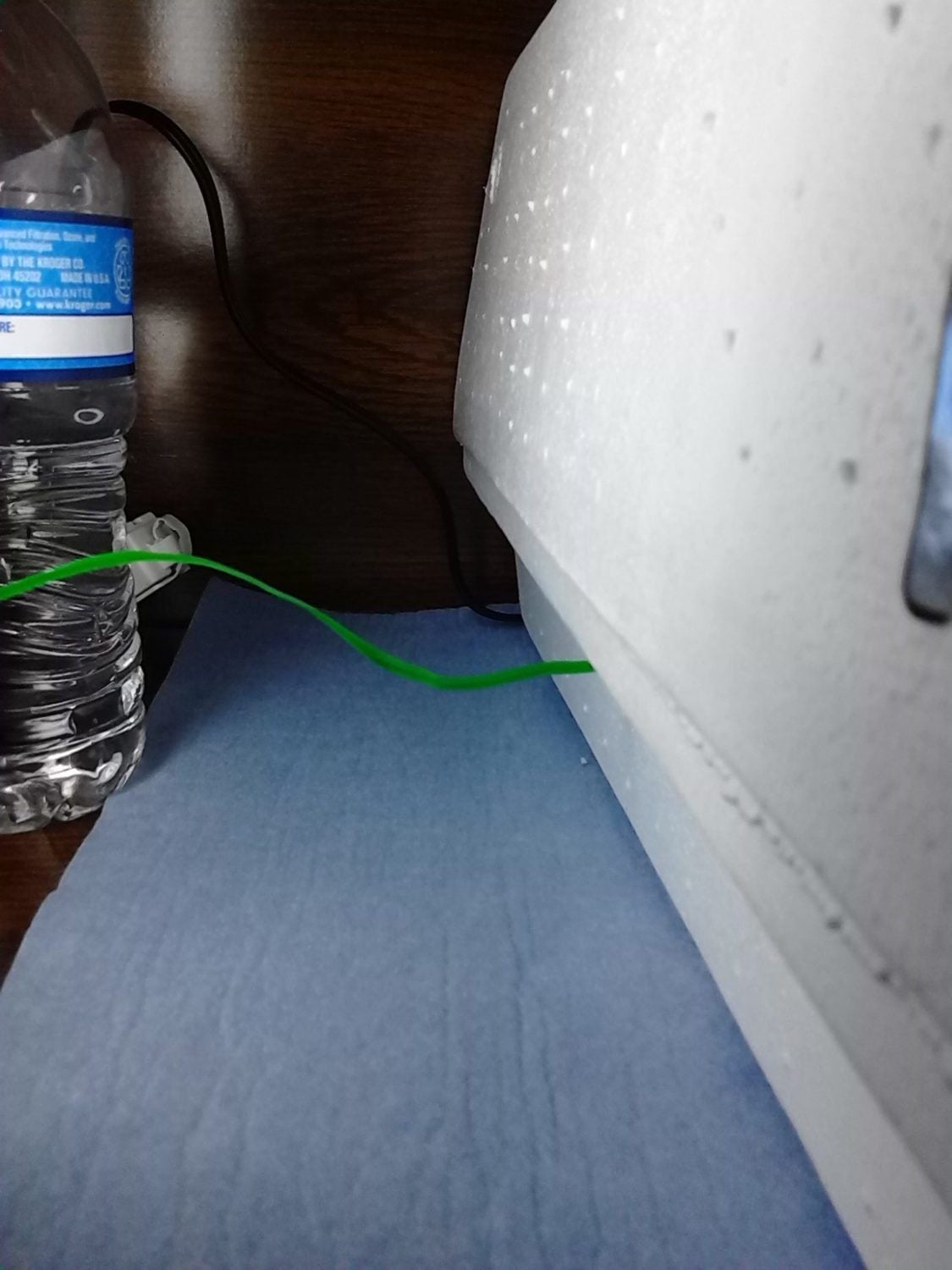 I thread the twist tie thru the bator outside to inside. Kinda kinked up on me a bit but still got it thru without making a large hole in the Styrofoam(hence why fish line would be better). I thread the two halves on opposite sides of the bator.
