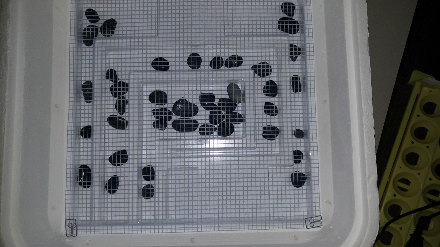 I simply took a piece that will fit in the bator and snap out squares from the grid of light diffuser. Just big enough to the size of the quail eggs. This will the main part of the turner.