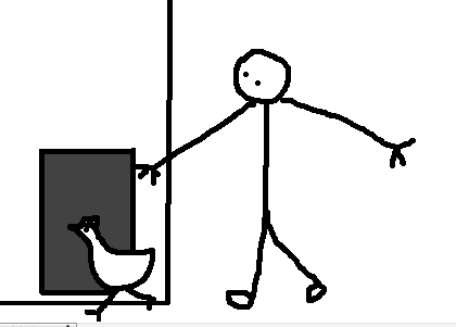 ps: further clarification, I get behind them, then I look steadily at the door where I want them to go, not at them, and have my feet pointed to the door as well. I don't say a thing.