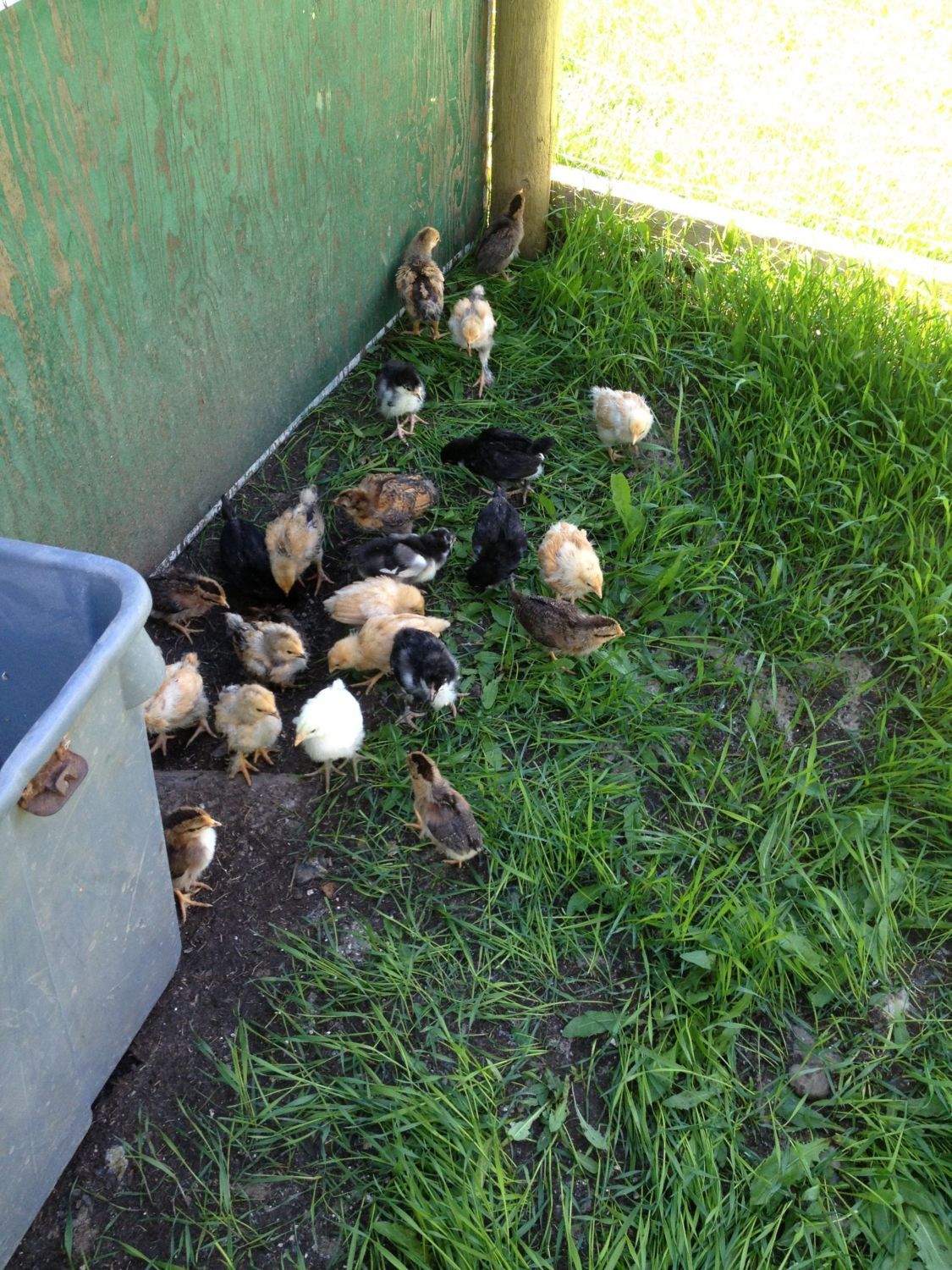 Jun 1, 2013 #218 Kjordanov Songster 7 Years Joined Jul 19, 2012 Messages 1,623 Reaction score 13 Points 118 Location NW Put my chicks outside for a playtime the very first time today! (They are 3 weeks old.)