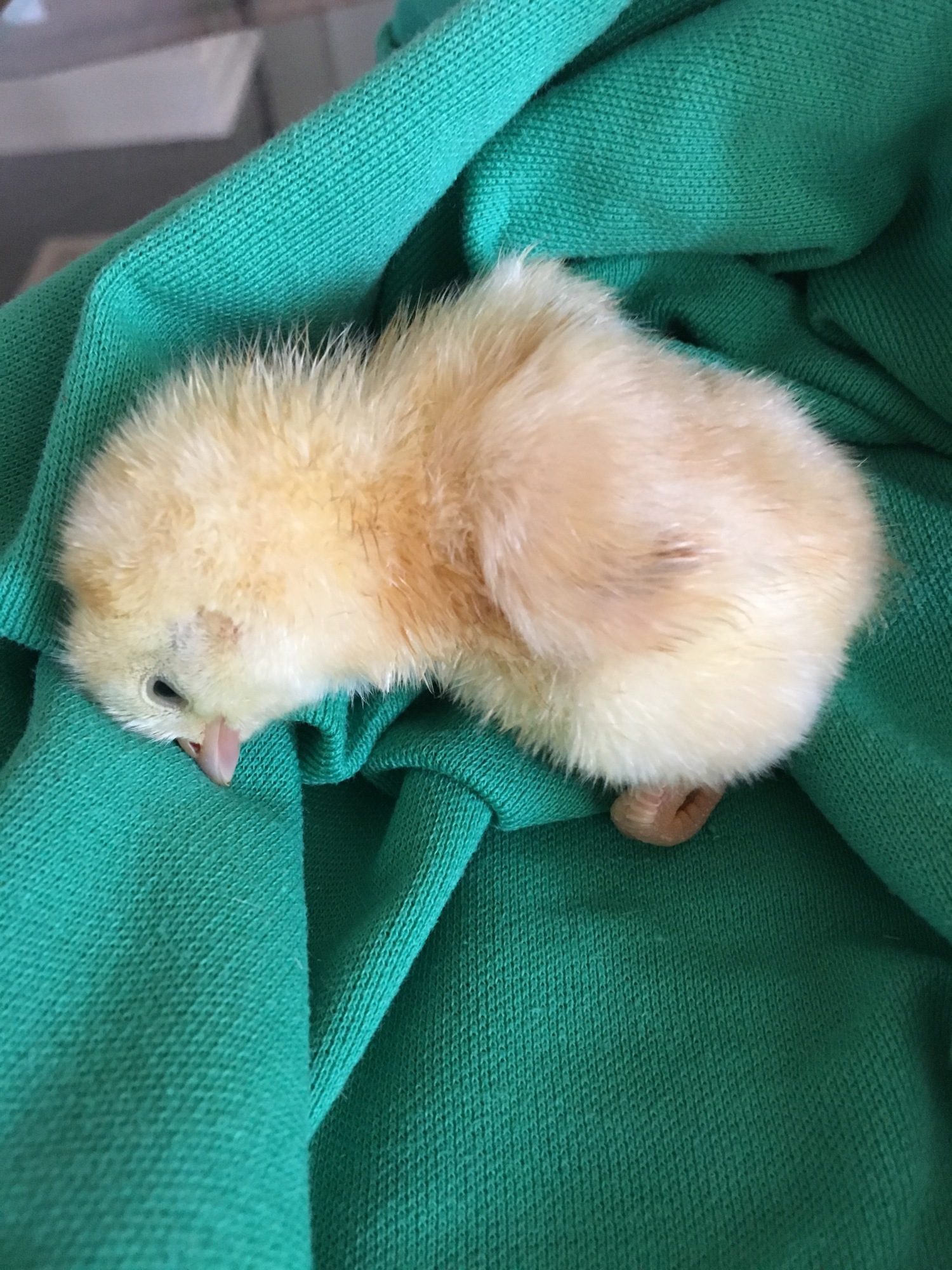 I have a little chick that I helped hatch. He was having some problems leaving the egg so I ended up helping him out. I made sure that the membrane had no blood, which showed that all the blood had returned back to the chick. Also, the yolk was completely absorbed into the abdomen of the chick. The problem is that he does not want to uncurl from a ball like position.