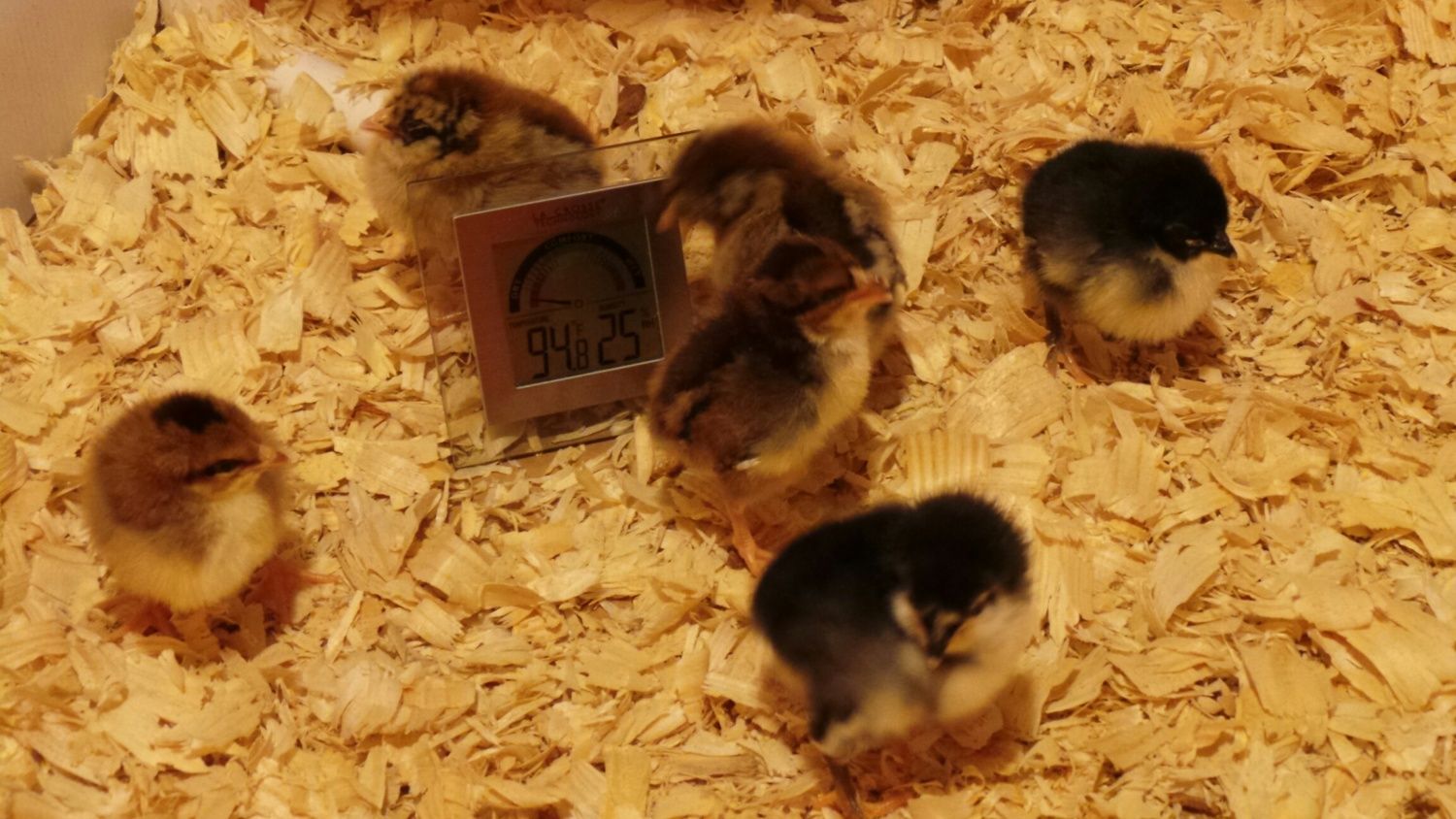 So, tonight I decided to sit for awhile and observe the "girls" to start to get to know their personalities. Well to my surprise one of the speckled Sussex decided I was more interesting and jumped on the waterer and then out the brooder. SURPRISE.