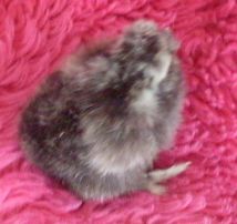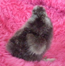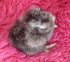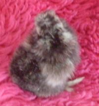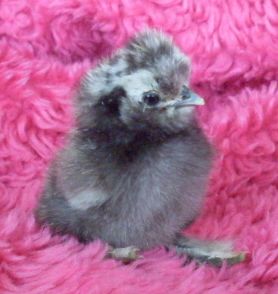 My daddy roo is white with a single black feather on his head fluff. My hen is a very light golden partridge with a dark gray hat/head. I`ve bred these 2 adults together and last tiime I got