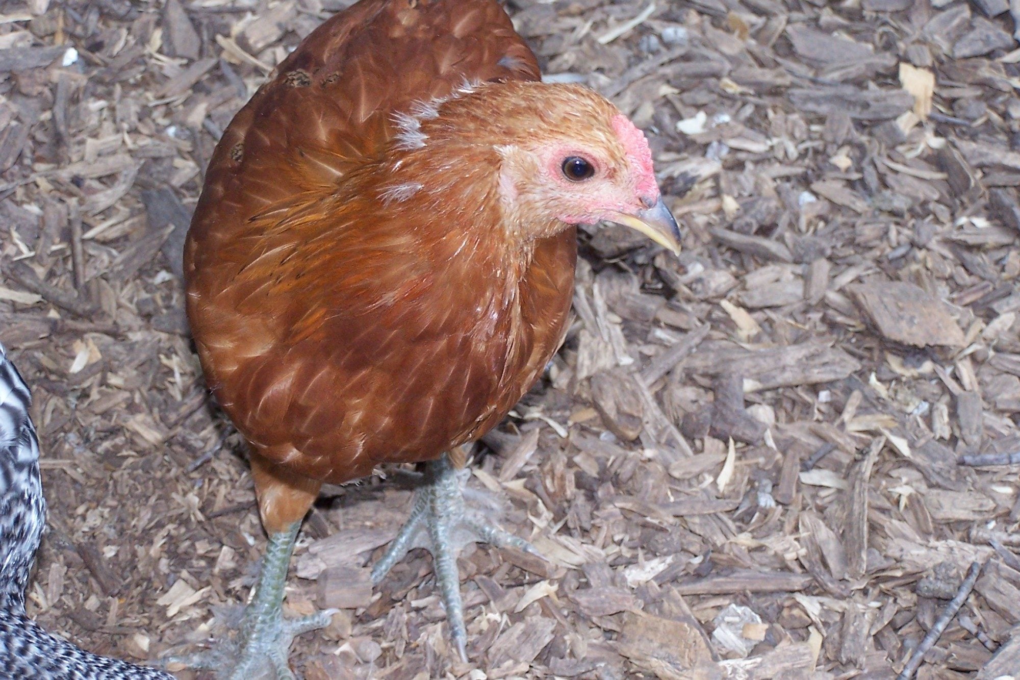 I originally thought this was going to be a roo with the red comb quickly forming (smallish but red), but not being sure about Banties I asked a feed store clerk who is supposed to be a chicken expert. That lady said that banties get humongous combs by 3 weeks if they are roosters....which mine hadn't...so she thought hen.