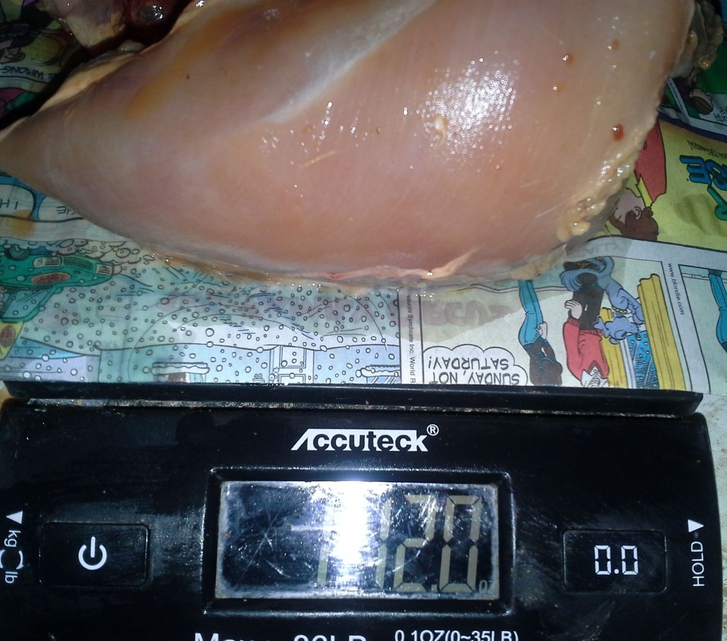 His live weight was not a lot, which is why we chose a smaller one. Keeping the larger broilers and giving the bigger ones more time to put on weight.