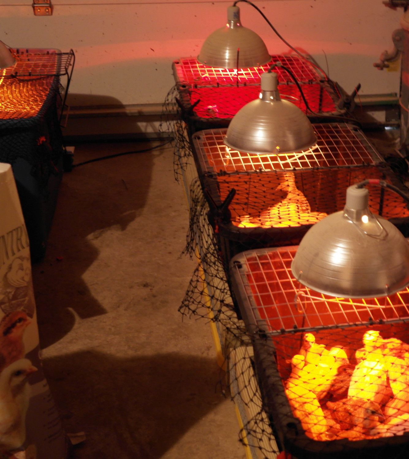 1 & 2week olds (wire bottom tubs lights on thermostat controlled dimmers)