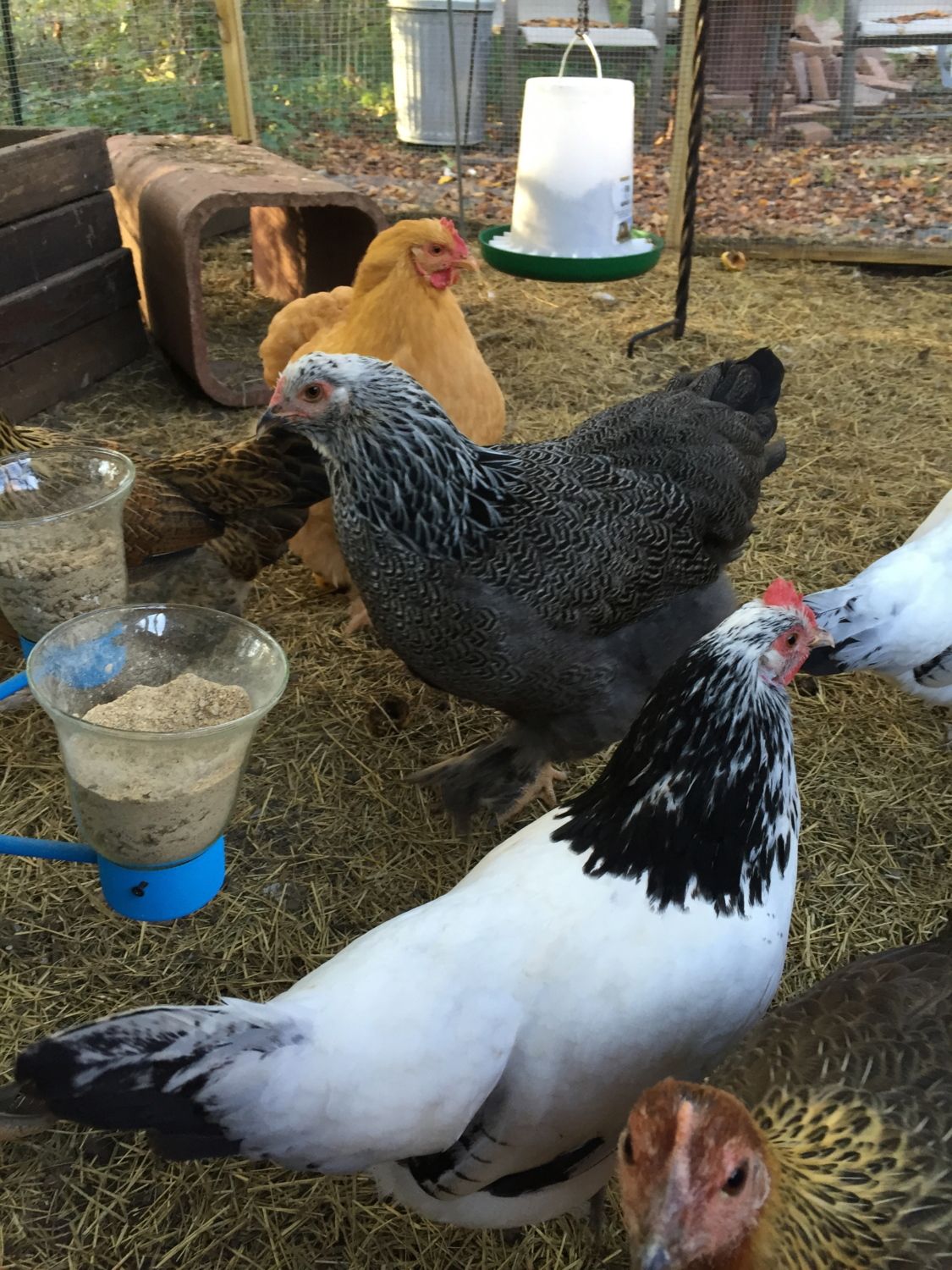 Calcium should be available at all times for the layers, I use oyster shell mixed with rinsed, dried, crushed chicken egg shells in a separate container.