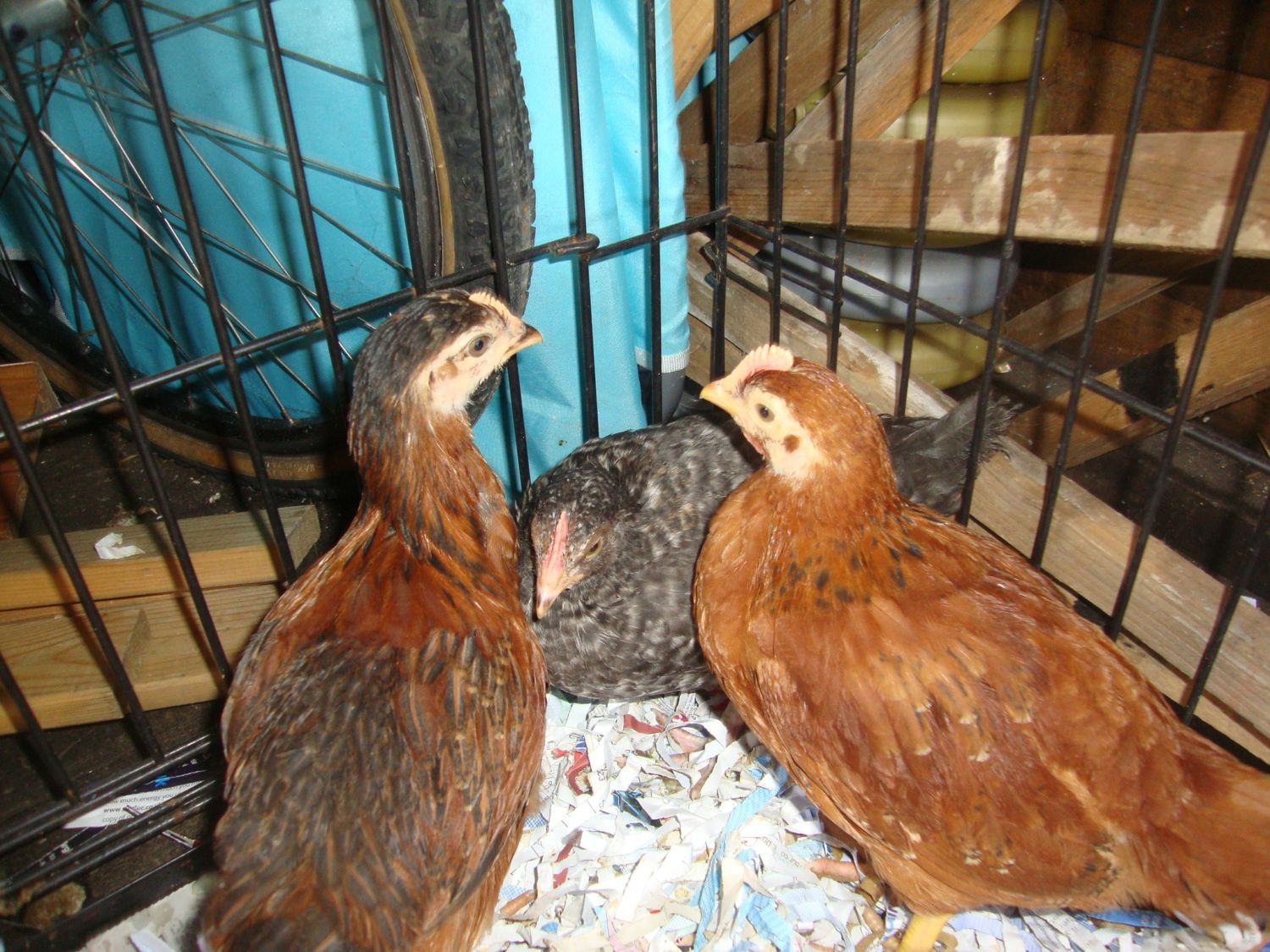 the 3 suspects. well im sure 2 are roo's. in this picture the one in the middle im not sure about it has a comb but its yellowy but that could be due to age? as this one since i had it has allways been bigger than the rest maybe because it maybe a little older im not sure. in the previous picture its the one on the left. any help would be great there now 6weeks old.