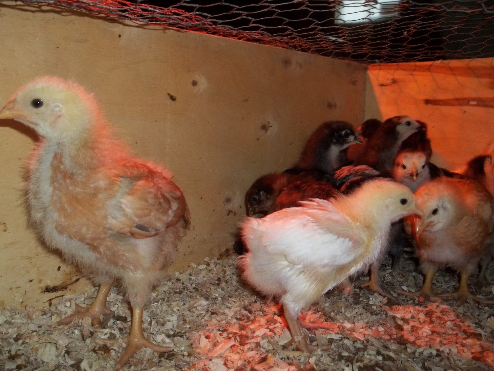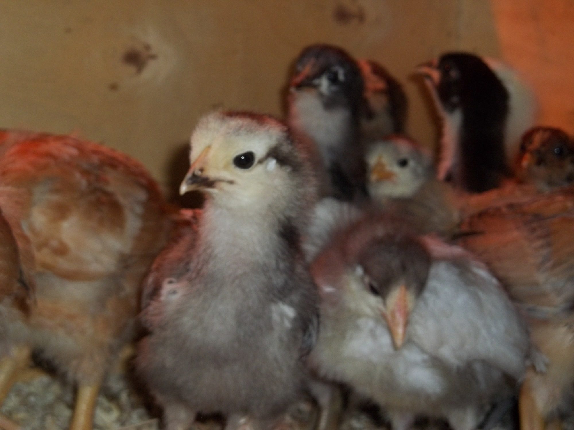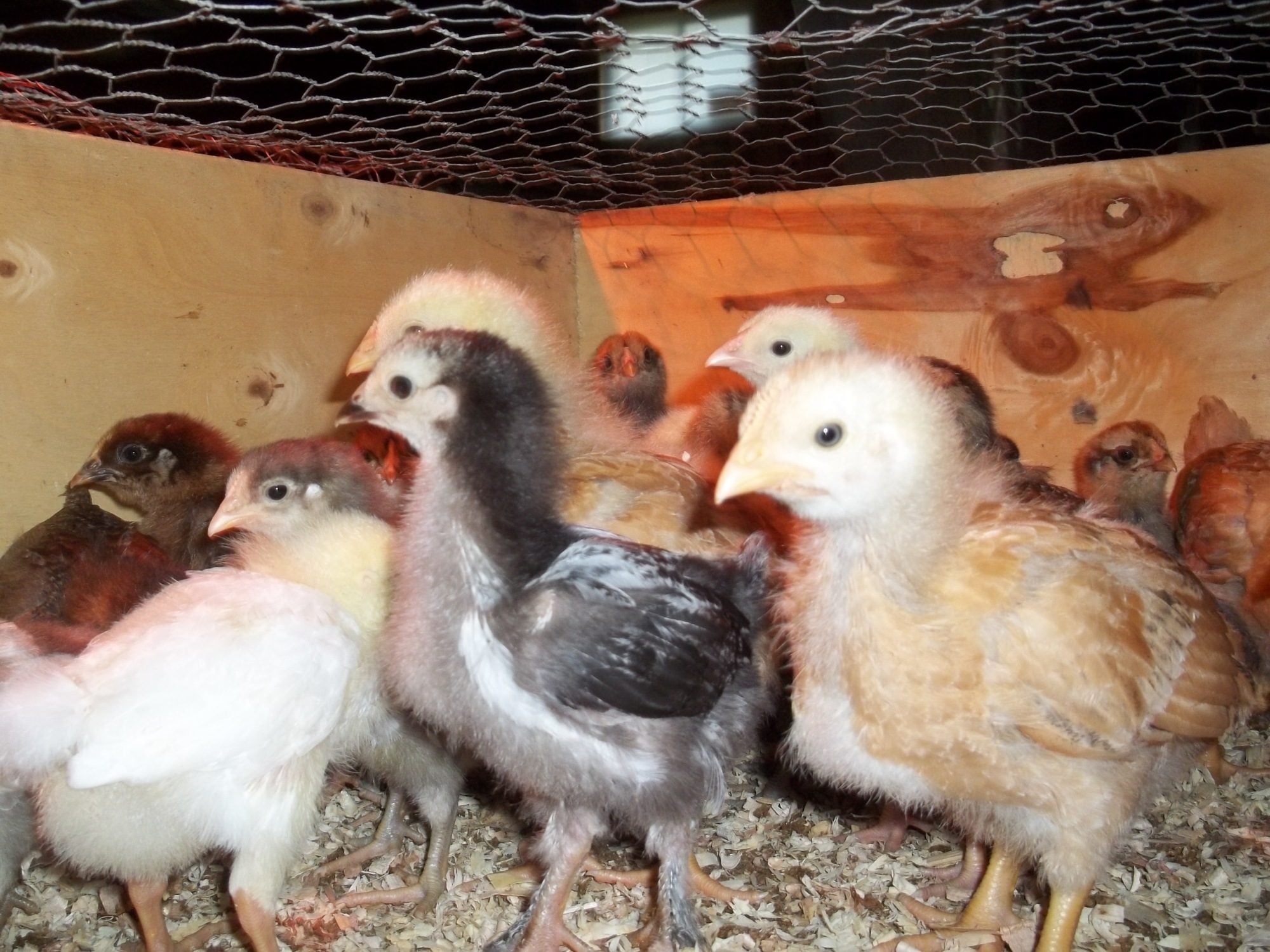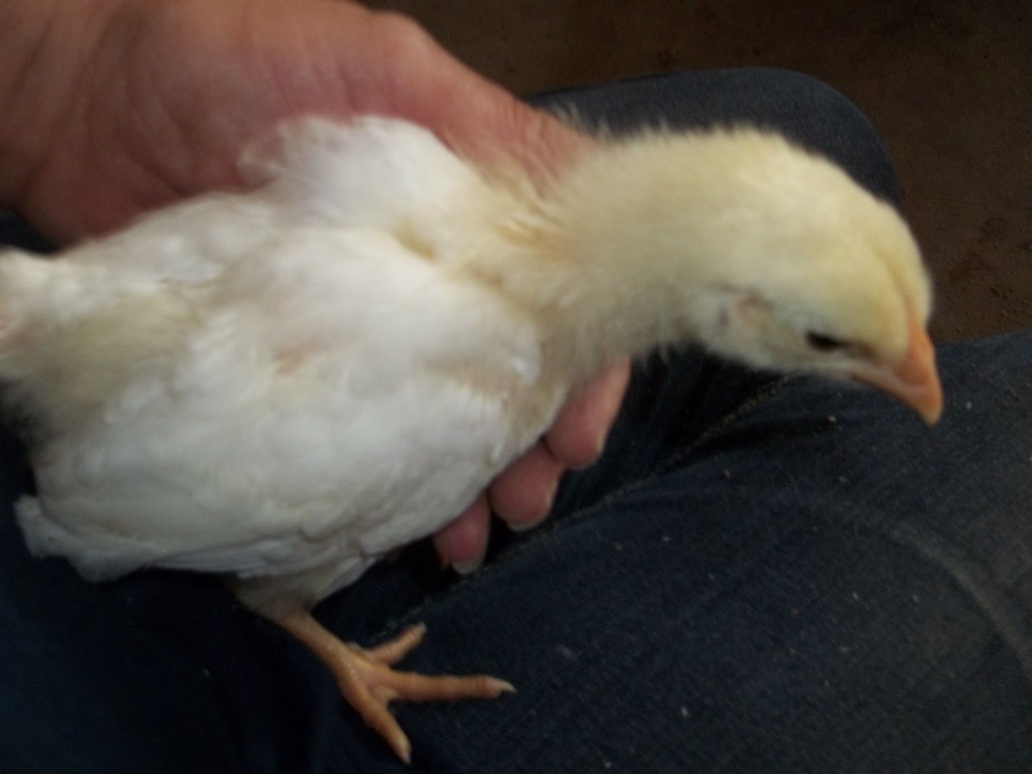 Actually my favorite EEs are yellow as chicks, with charcoal smudges. As adults they are soft tan with lots of white. The one being held on the OP's lap where the caption says "for sure no EE" has me stumped because those look like EE cheeks and it's colored and patterned just like an EE I got last year. So I don't think the size says anything about it's identification other than it's parentage may have been larger birds.Light brahma's will have feathers on their feet even as babies. EE's are brown or have chipmunk like patterns some may have puffy cheeks. Im not sure with your other breeds as Ive never owned them, but that should help some!good luck with your new little ones!![]()
