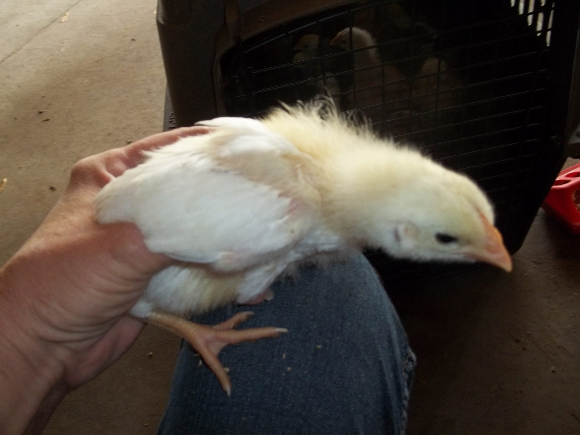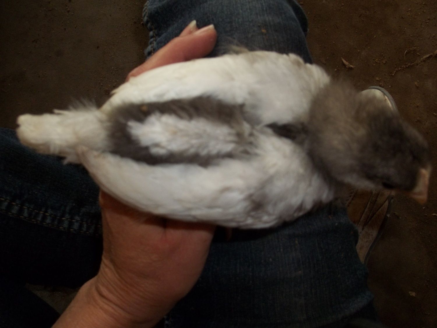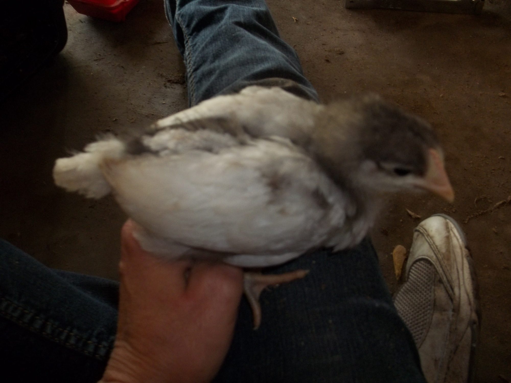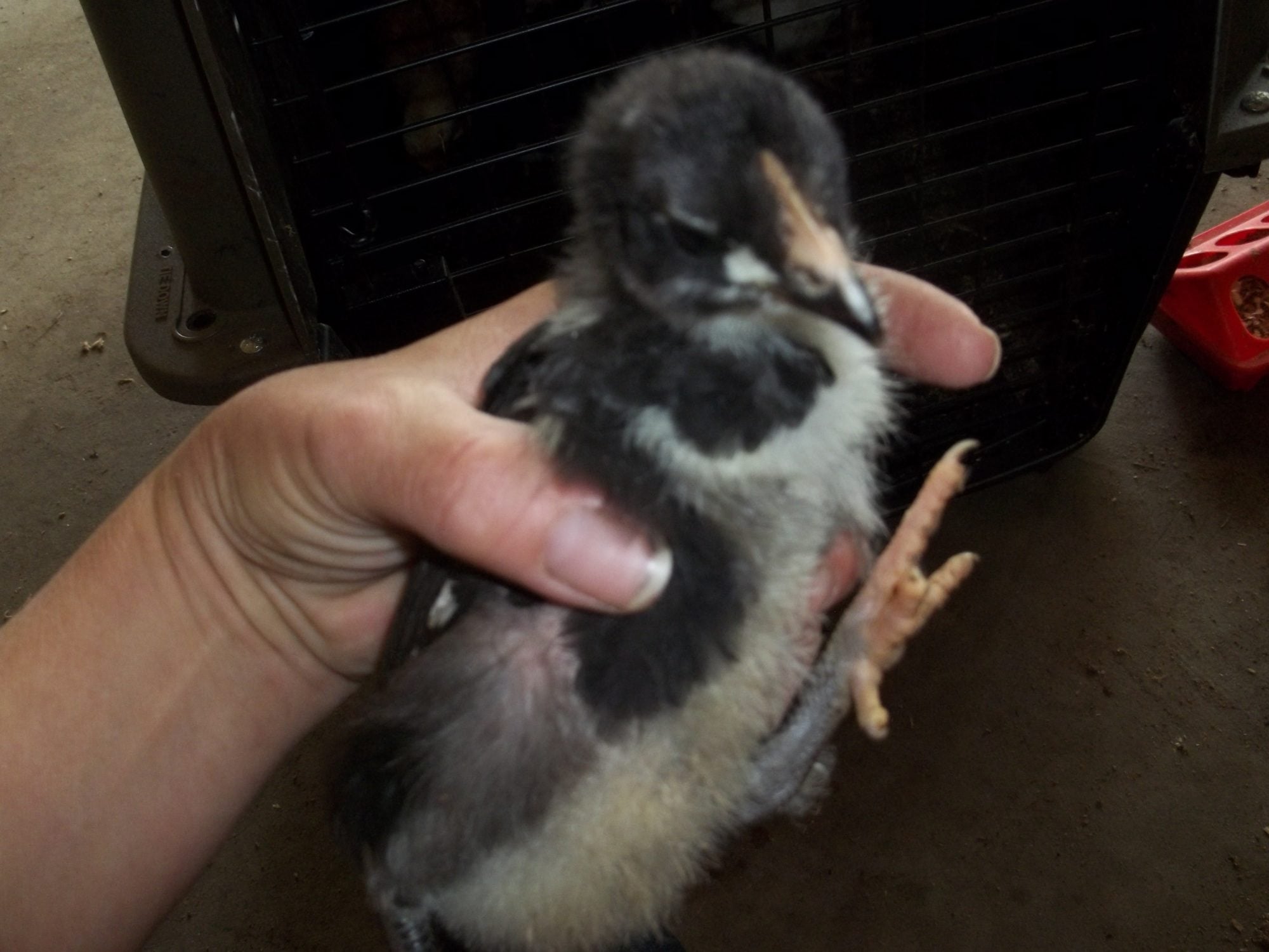 Actually my favorite EEs are yellow as chicks, with charcoal smudges. As adults they are soft tan with lots of white. The one being held on the OP's lap where the caption says "for sure no EE" has me stumped because those look like EE cheeks and it's colored and patterned just like an EE I got last year. So I don't think the size says anything about it's identification other than it's parentage may have been larger birds.Light brahma's will have feathers on their feet even as babies. EE's are brown or have chipmunk like patterns some may have puffy cheeks. Im not sure with your other breeds as Ive never owned them, but that should help some!good luck with your new little ones!![]()