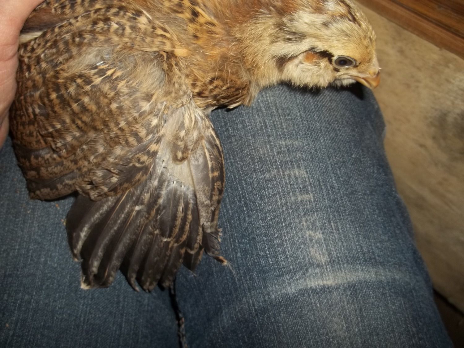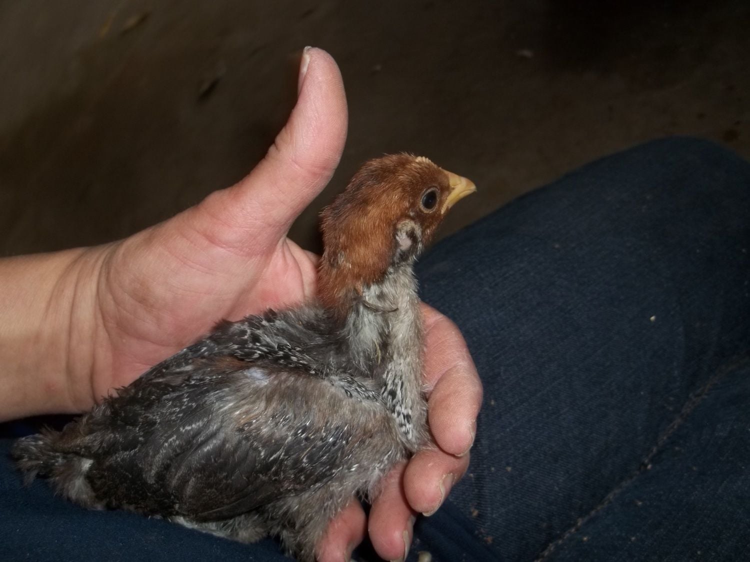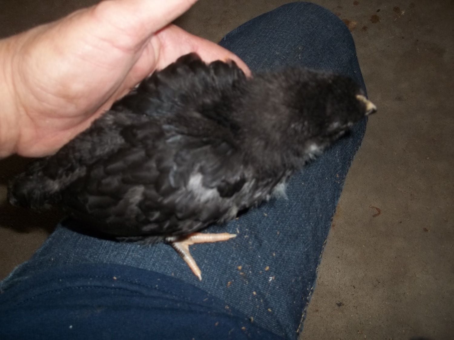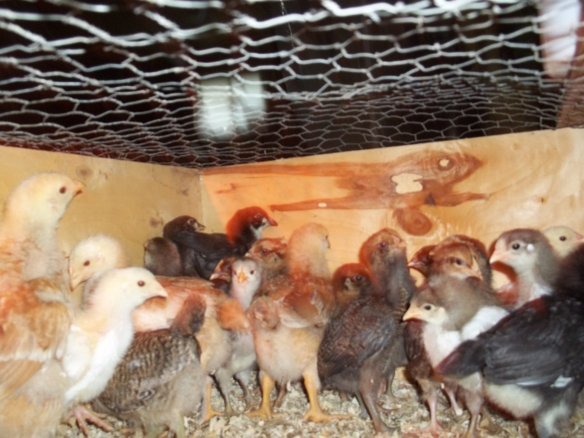 Actually my favorite EEs are yellow as chicks, with charcoal smudges. As adults they are soft tan with lots of white. The one being held on the OP's lap where the caption says "for sure no EE" has me stumped because those look like EE cheeks and it's colored and patterned just like an EE I got last year. So I don't think the size says anything about it's identification other than it's parentage may have been larger birds.Light brahma's will have feathers on their feet even as babies. EE's are brown or have chipmunk like patterns some may have puffy cheeks. Im not sure with your other breeds as Ive never owned them, but that should help some!good luck with your new little ones!![]()