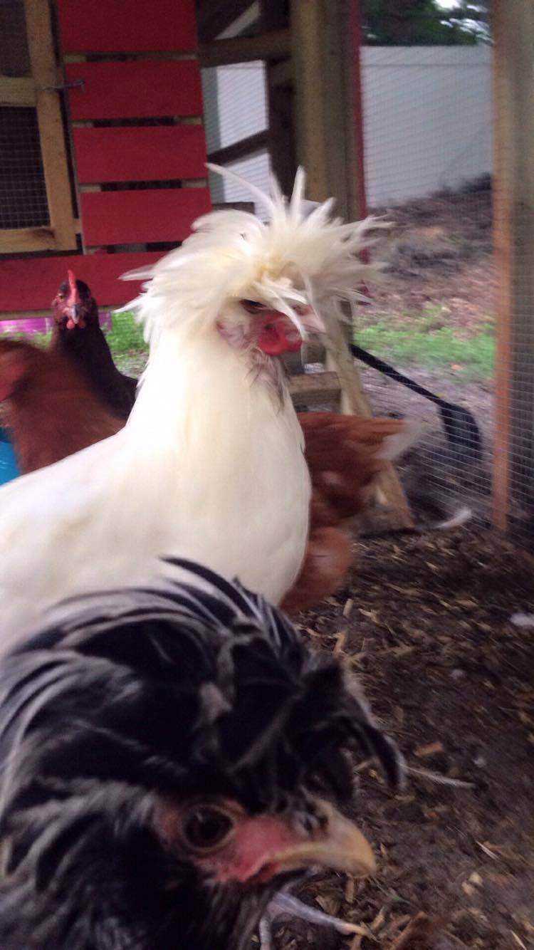 My friend has two Polish chickens that are 18 weeks. All of her other chickens are definitely pullets (sex links and RIRs) but she said that she's been hearing crowing in the morning, so my best guess is that it's one of the straight run polish. She sent me pictures of the suspected crow master, but I have zero experience with Polish chickens. Any ideas on gender?