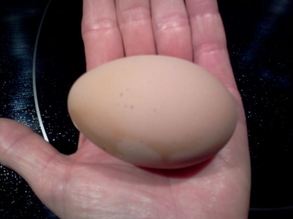 One of my 23 week old girls, I think it's the Salmon Faverolle, finally laid her first egg today!! Yay!!