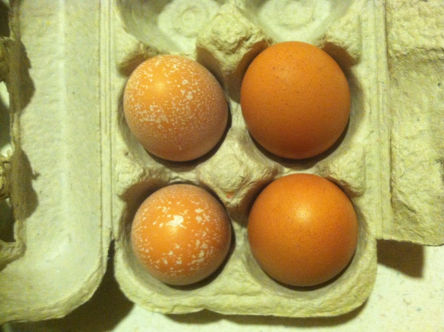 #4 was 8/14/12 layed in yard(secret hen's nest shhhh) a bit harder shell(19 weeks 2 days old)