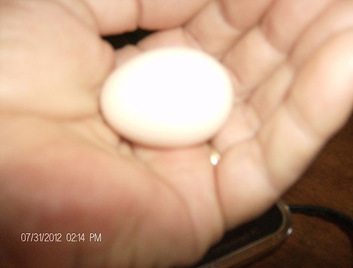 We're pretty chicken crazy, so have been able to sit and watch who lays; most of our eggs are coming from the Gold Sexlinks. We've only seen one Brown Leghorn lay (easy to pick out those eggs, but sometimes another breed lays a VERY pale egg that looks white, so ... ?). Yesterday one Buff Orpington gave us a tiny pinkish egg, and today a second is sitting in a box (practicing? laying?). And we've gotten one egg from a Silver Laced Wyandotte. Good girls!