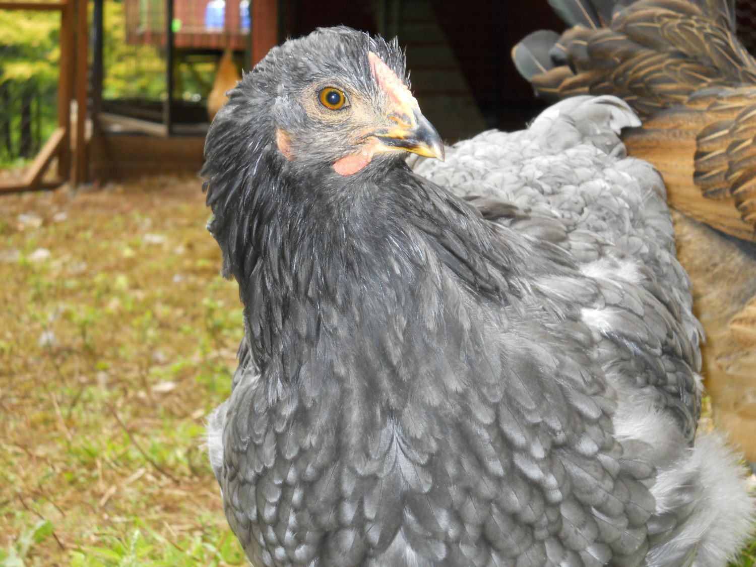 Dixie- almost 19 week Silver laced Wyandotte. was the smallest of the flock since hatch. Very quiet.