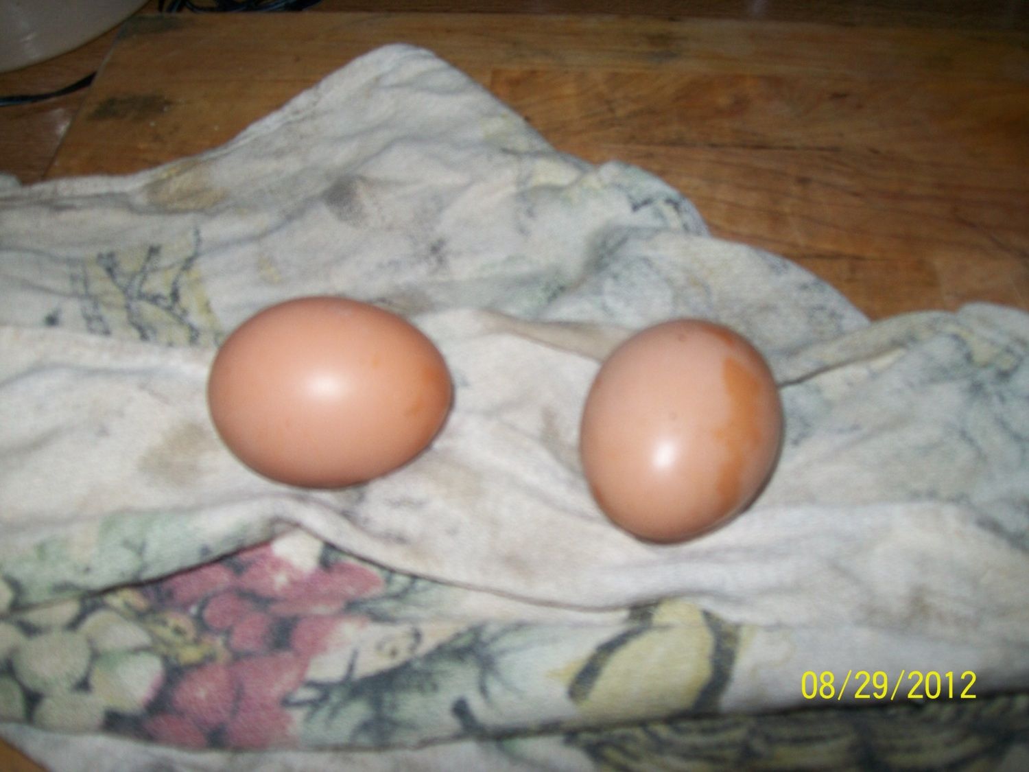 My RIR was the last to start laying and my Barred was second to last. They started about...maybe 3 weeks ago?Wow, that is a freaky egg! It does look like maybe a failed double yolker? Only one of my girls has laid so far, and out of her three eggs, the first had a small bloodspot, the second was a double yolker, and the third was normal and large. Is yours a new layer?