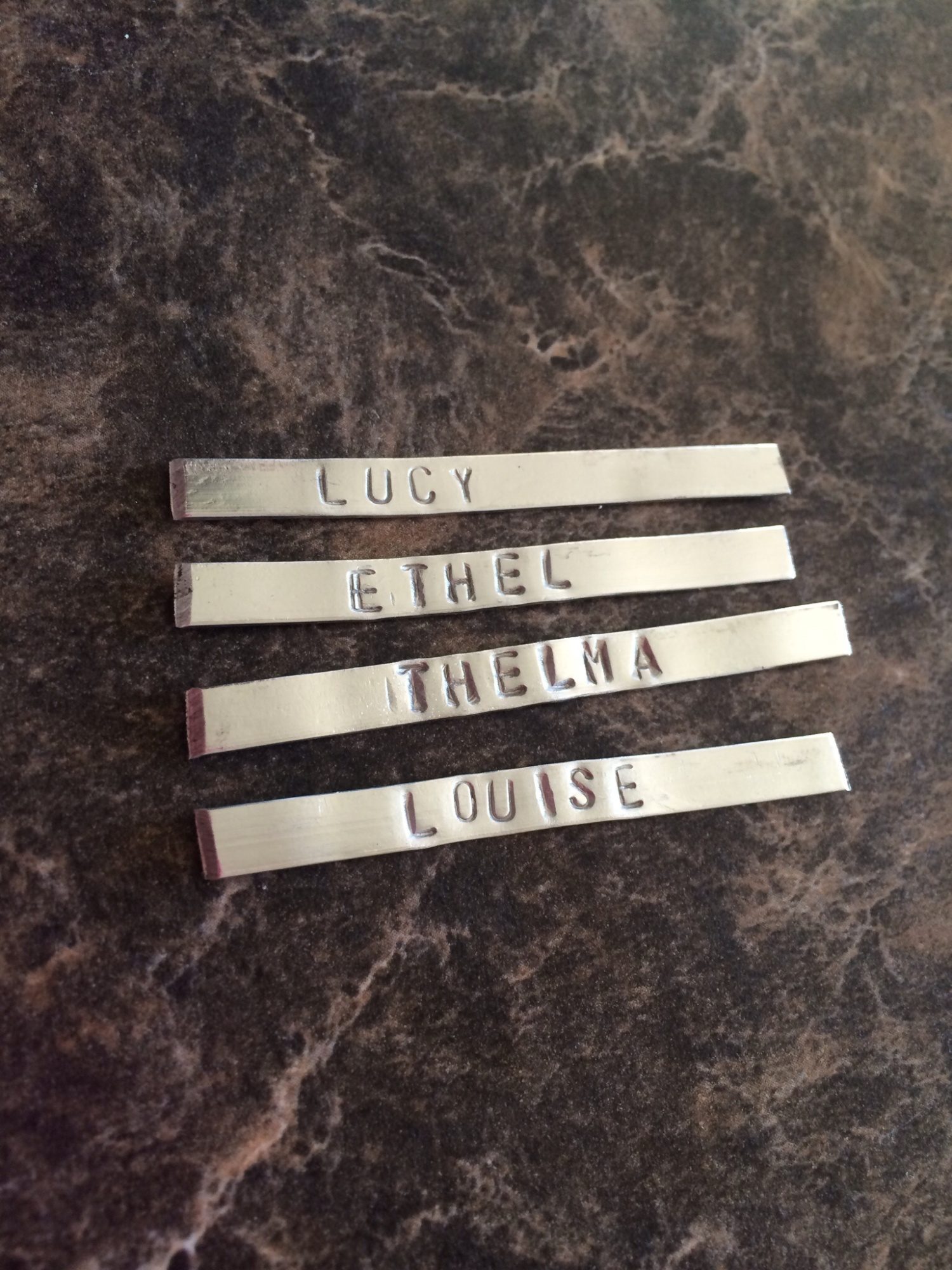 They're def not perfect the metal kept sliding out from under my stamps lol and I still have to curl them and try them on the girls to get the right size. I'm going to get a clamp to hold the metal and try again
