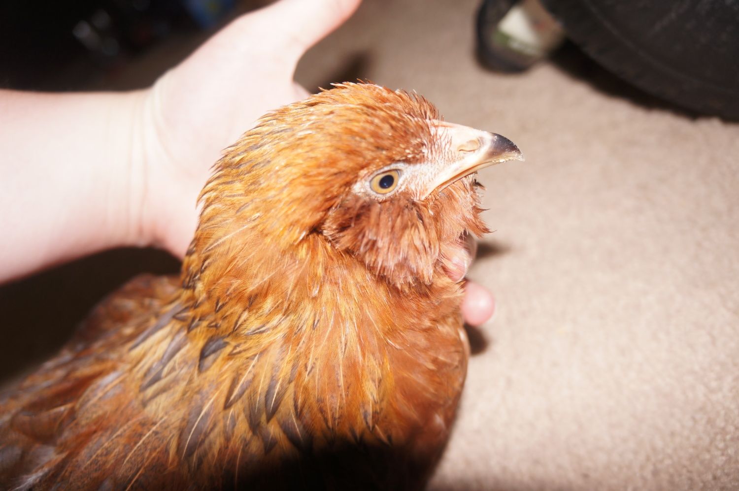 yesterday, after a 3 day struggle, a pullet that i was caring for for my mom died. we had just gotten her and another of the same age (give or take 8-10 weeks old) from Vermont. i had gotten 5 older chickens from the same woman a week or so earlier, they are all healthy and doing well. on the first day, i went out to the coop and noticed Midge laying on her side among the other chickens. i knew something was wrong because when i shined the light in, all the chickens got up and went to the food or just to see what the light was. but Midge was up against the wall and stayed there. i picked her up and set her on her feet and she just flopped over. i brought her inside into the AC thinking it was heat stroke again. i put the fan on her and she perked up a lot. she perched on the side of the tote all night. she was still eating for the most part, but i had to kinda move the food around. i stuck her beak in the water so she would drink because otherwise she wouldnt have.