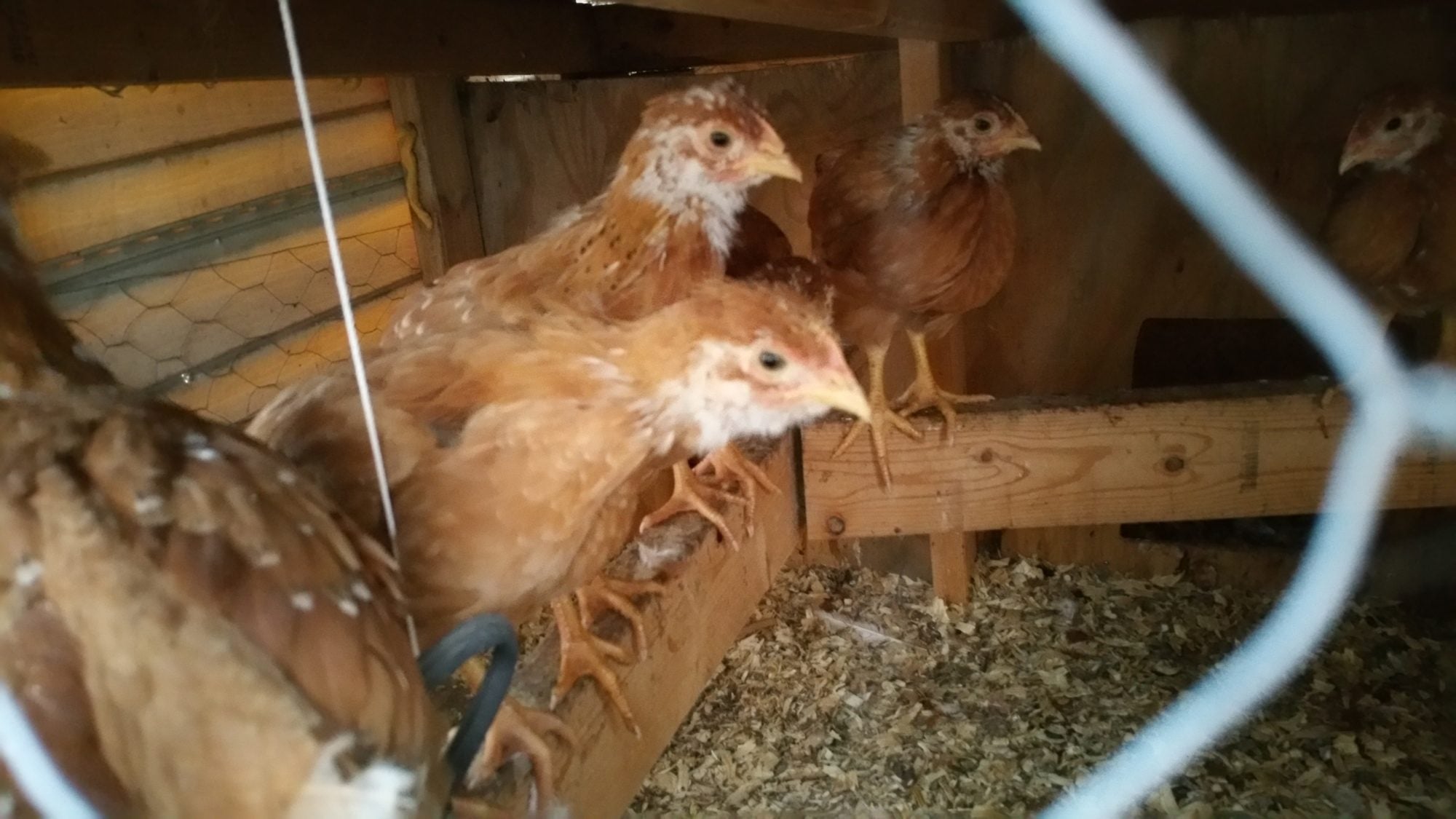 I got these two hens about 6 months ago. At the time, I had no idea what they were, but they were free, so took them. THe chicks I bought at Tractor Supply. They are about 7 weeks old.