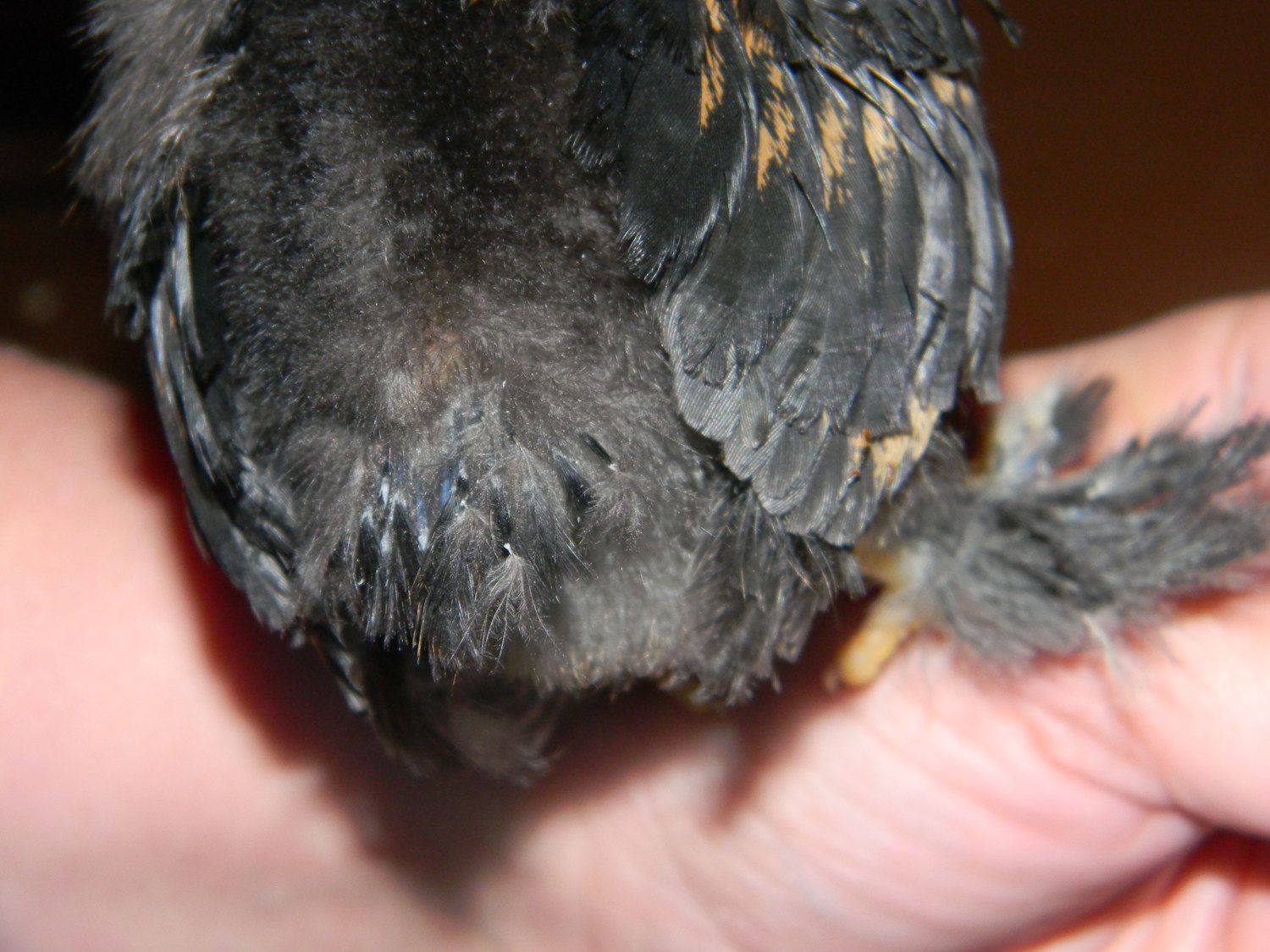 Daisy May, one of the Mottled Cochin Bantams who I am thinking may be a Roo....