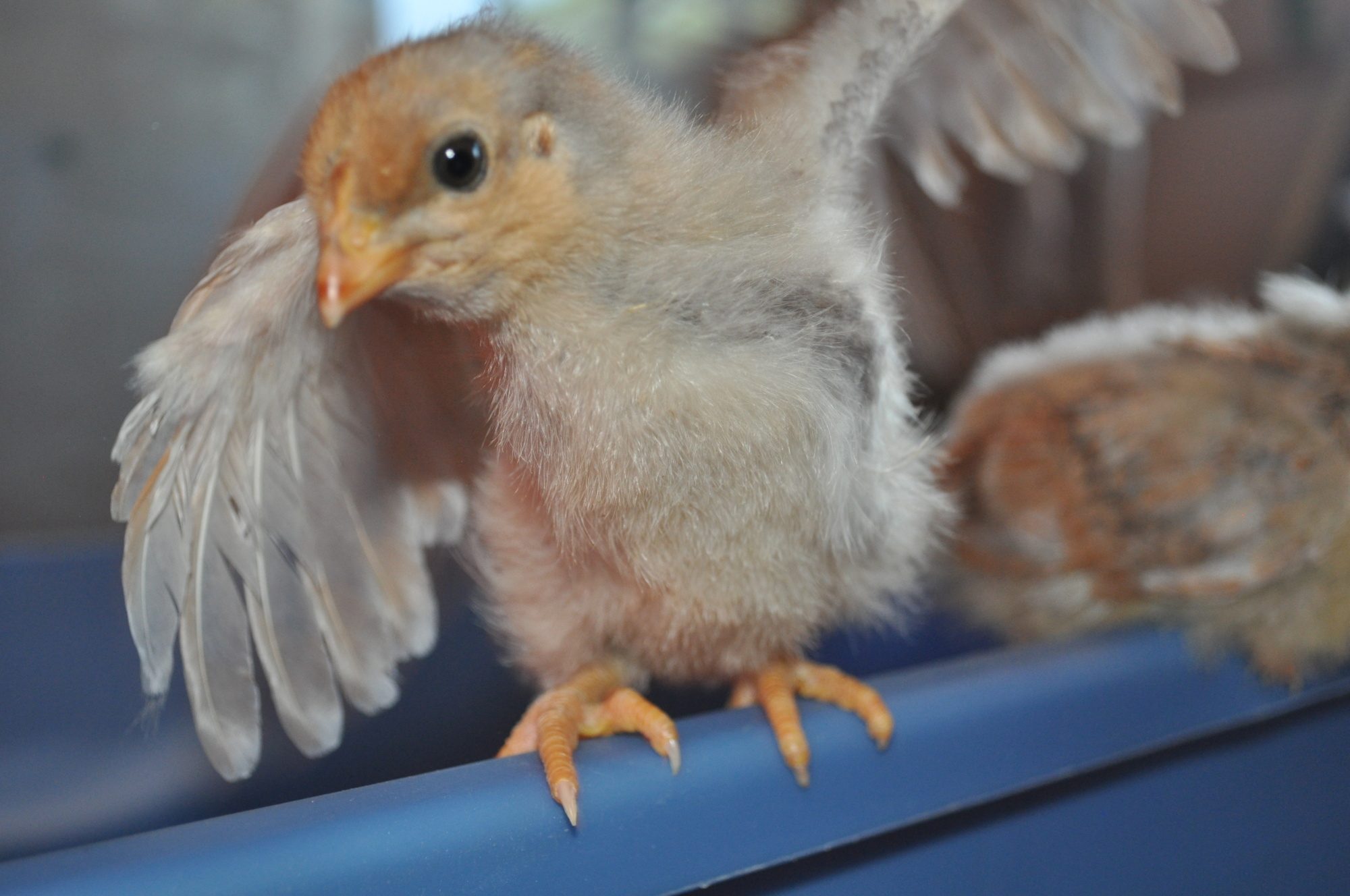 And this shot I got of her. I think it was too hot in the brooder so they did that gaping thing. I raised the heat lamp up after wards.