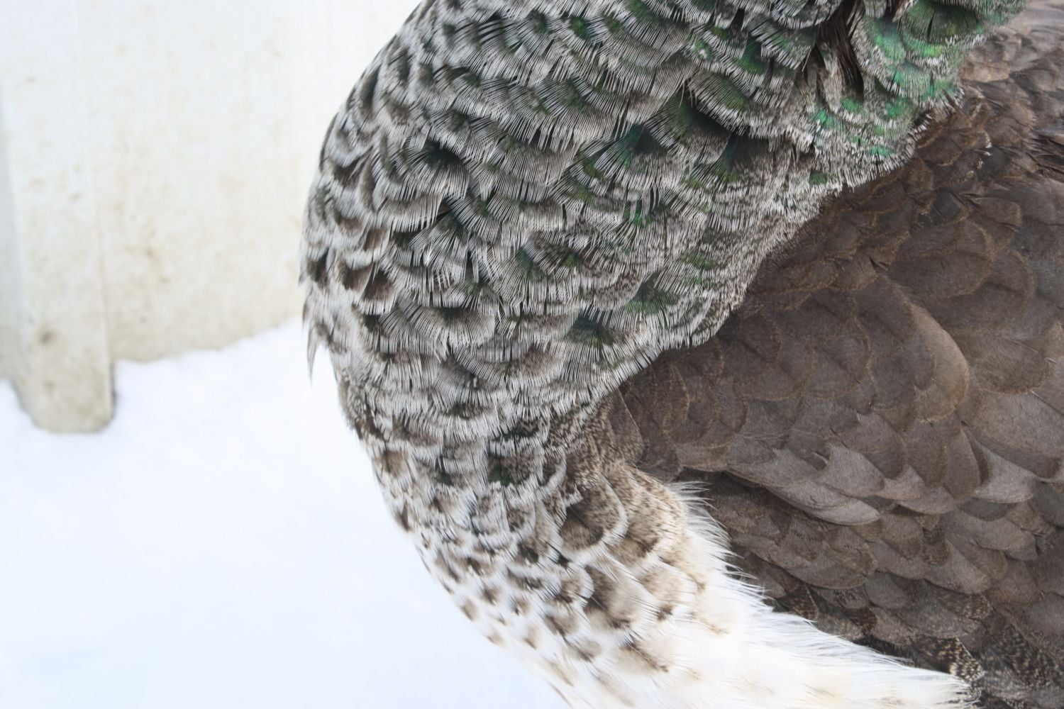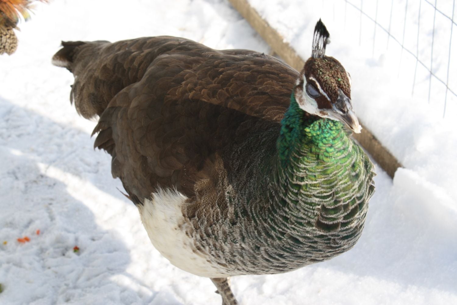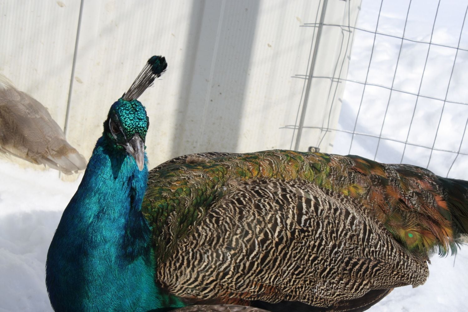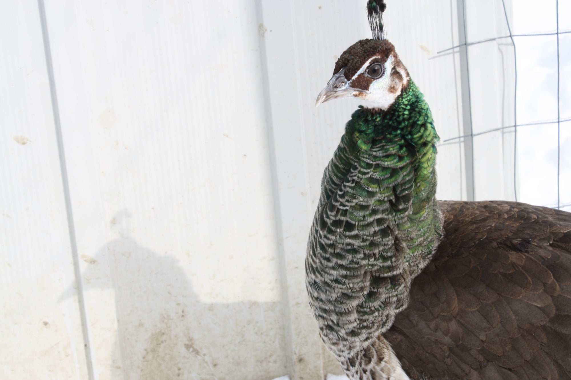 poppy had a couple small eye feathers last year (as a 1 year old)Mine get small trains but not one bird has eyes on a train until they are growing the 3 year trains. I do not know why some people's peas get eyes at 1-2 years and mine in CT don't LOL