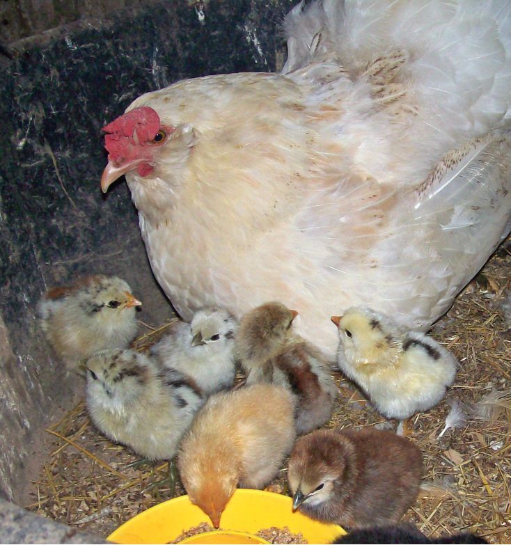 Here's my white EE and her babies. She raised all these babies for over nine months.