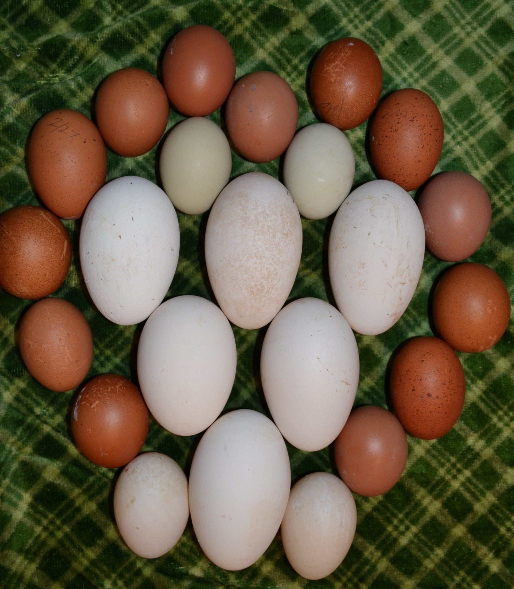 Here's one from my eggs- future Maran and OE chicks, Khaki Campbell ducks, Sebastopol Geese: (Rotated clockwise, it sort of looks like a heart.)