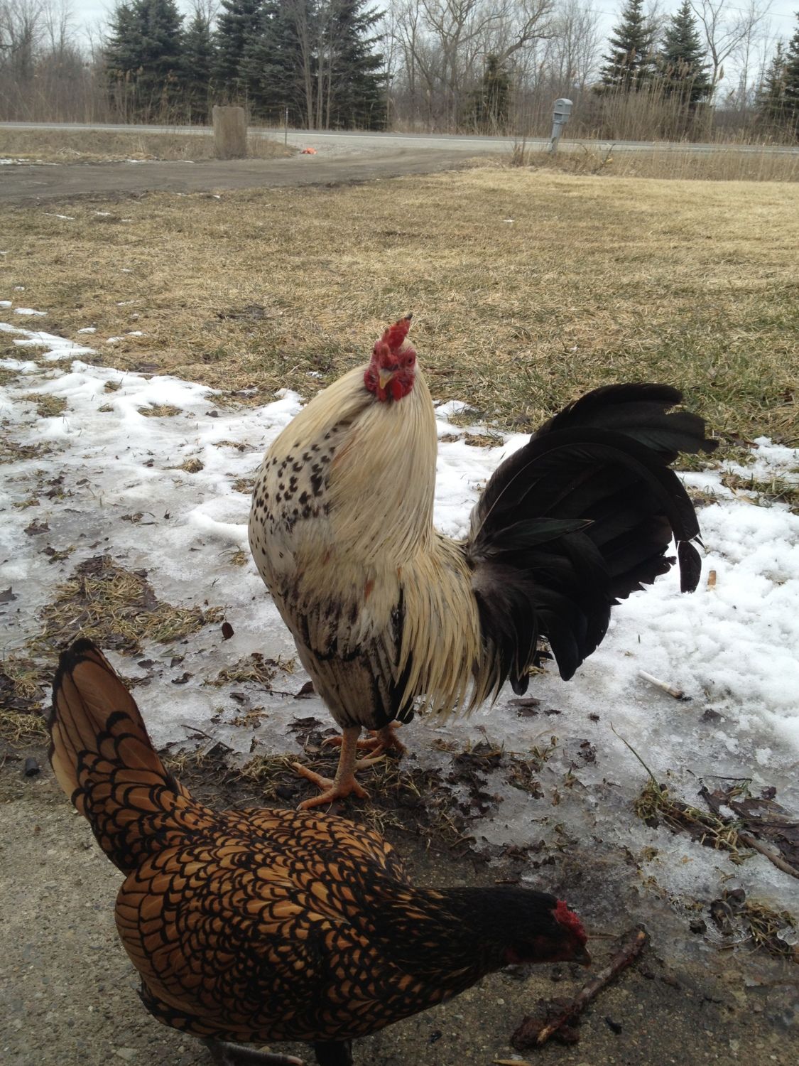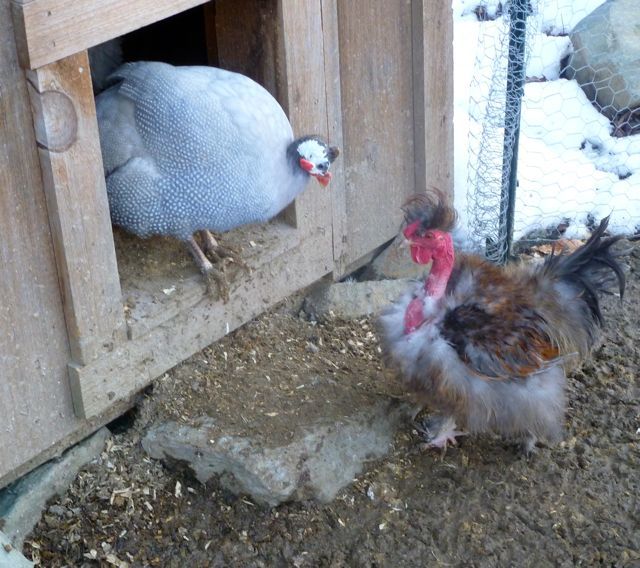 (I wanted to get a closer shot of the scene, but I spooked the guinea and it went back to its own yard before I could take more pictures.)
