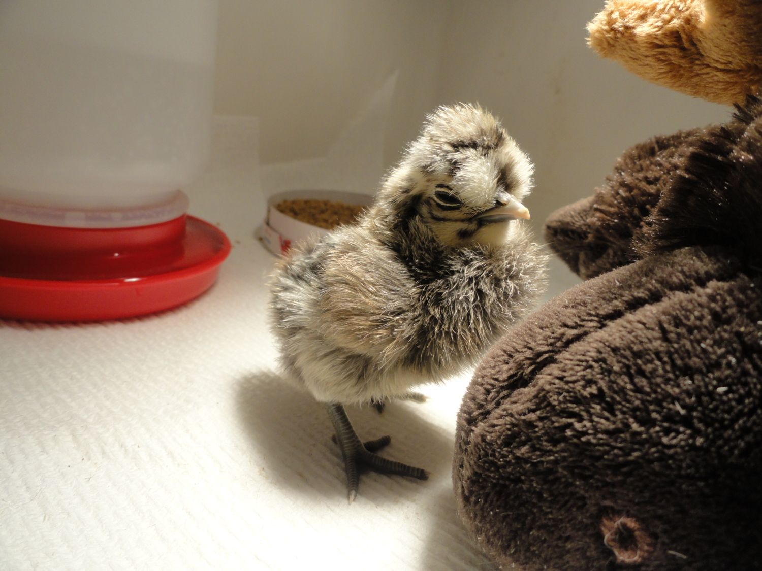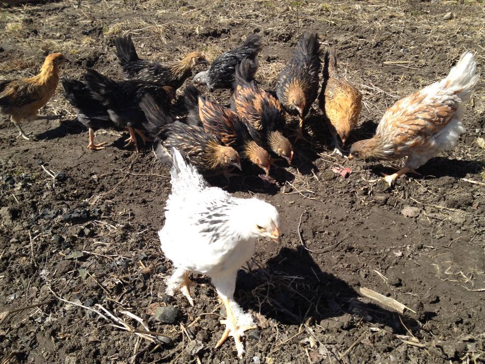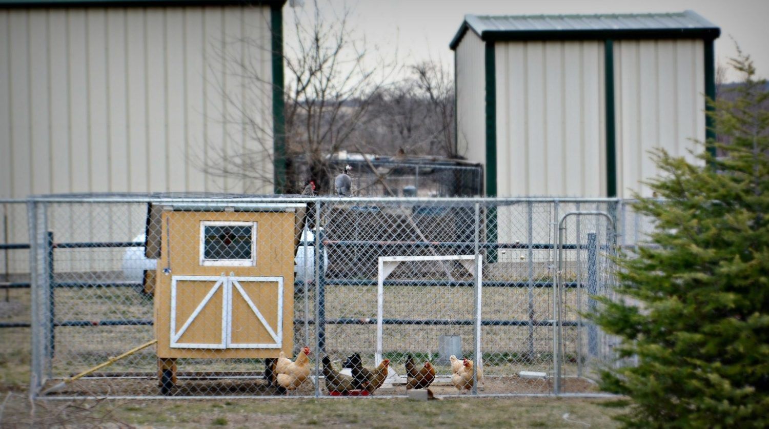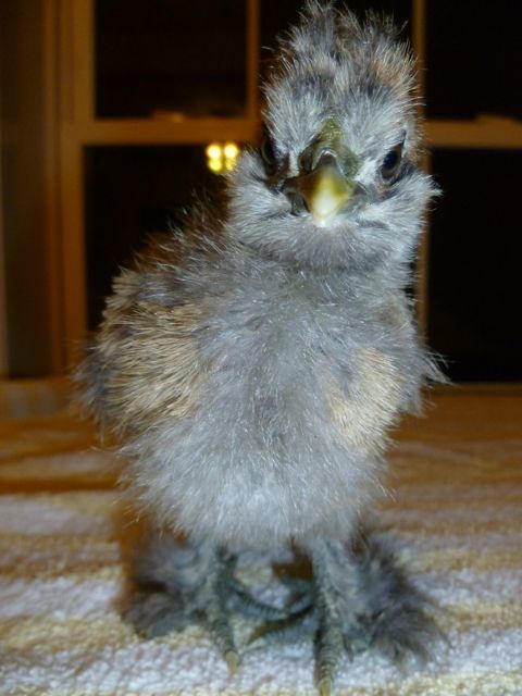 Our BR was sticking her head through the top of the pen and "talking" with the neighbor's guinea, who had flown onto the top of the pen.