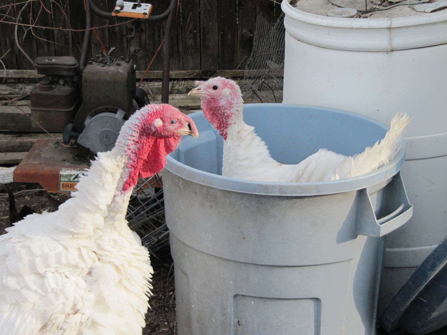Mar 27, 2013 #79 R RedIII Songster 8 Years Joined Nov 30, 2011 Messages 3,998 Reaction score 201 Points 228 Location Tooele, Utah I'd like to enter one I just snapped of my turkeys That's the feed barrel the hen is in..............They're having an argument because the tom is too fat to get in, but apparently jealous that the hen figured out how.....
