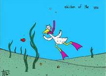 Q: Why did the chicken cross the ocean? A: To get to the other tide. I think that's what they call Chicken of the Sea...