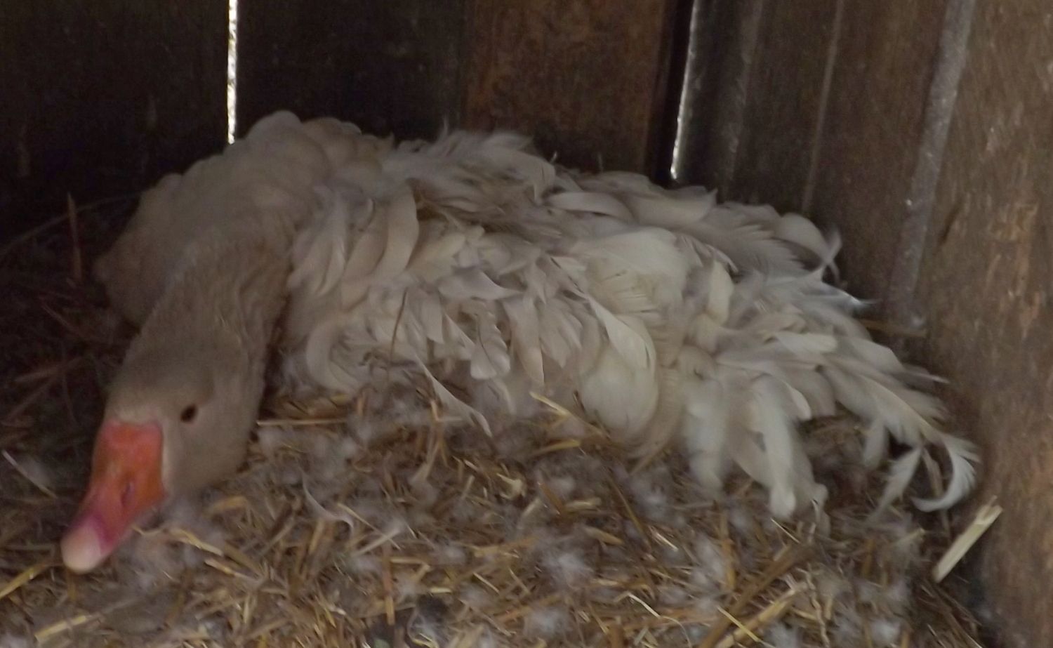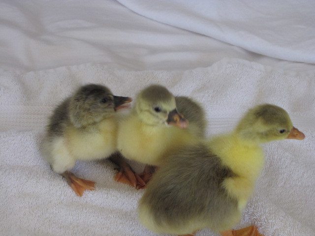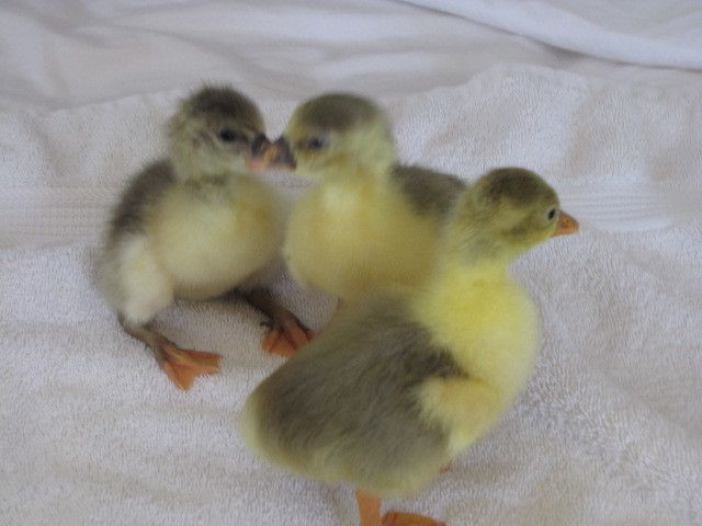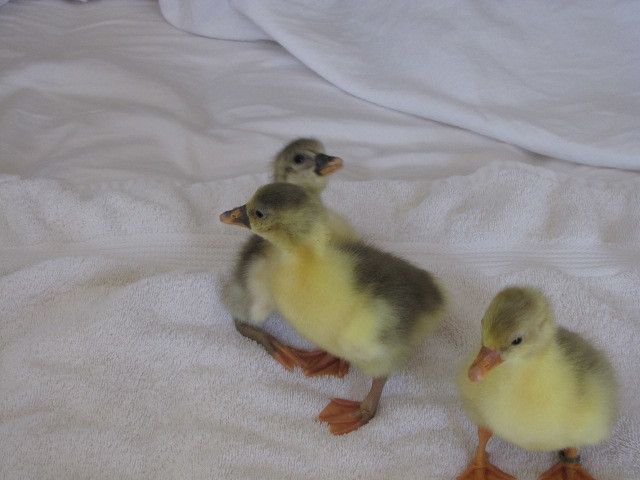 Winnie loves the 3 weekold goslings, such a good daddy goosie, lays right by the baby pen and watches them, and when i let them out he fusses over them like an old mother hen