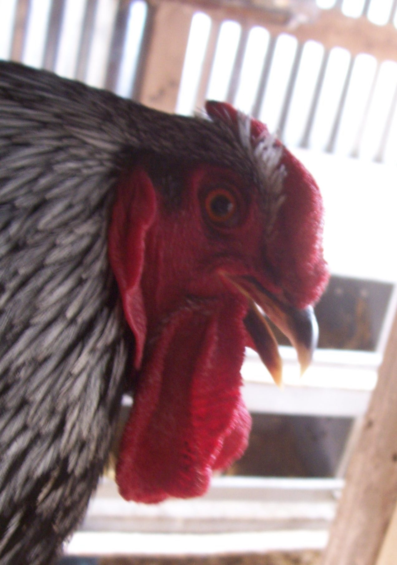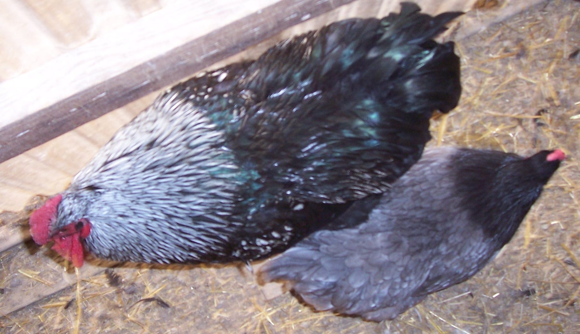 These are F1 from a Cross between a Columbian roo over a Blue hen. The offspring were Blue, Black and Birchen. The legs are smokey on some and will need cleaning up to the yellow....but type is good. We kept two best sons and two best Birchen marked pullets as well as several Black and Blue pullets.