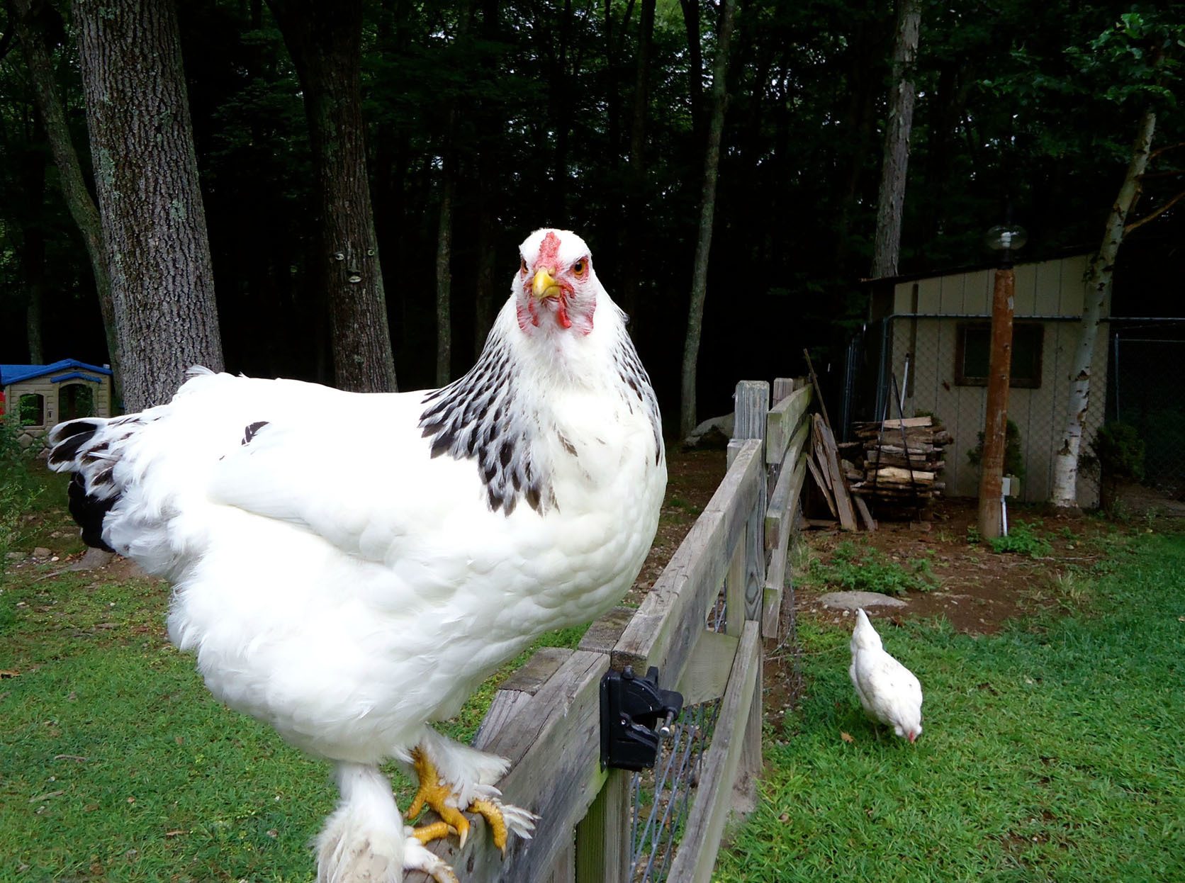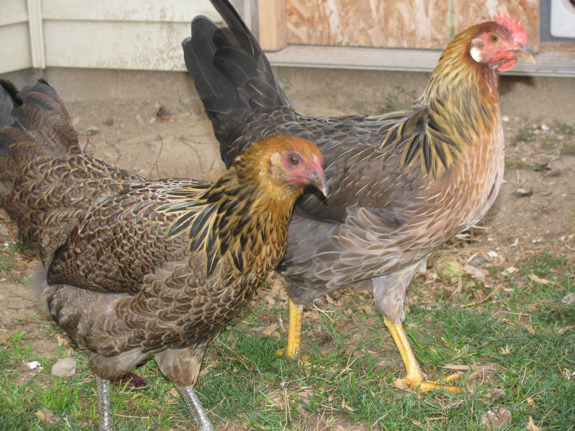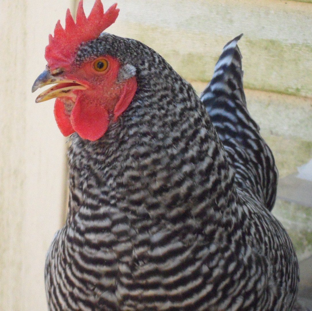 Top pic is one of my 9 week old rare Belgian Cuckoo Malines cockerels. Below is my black star broody Goldie, who hatched out a new batch of these Malines chicks this year.