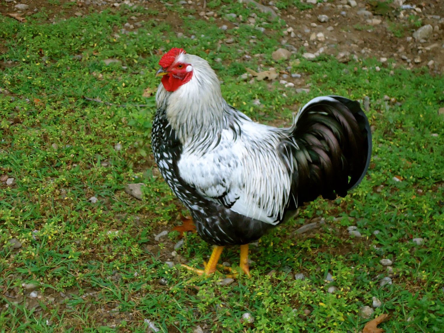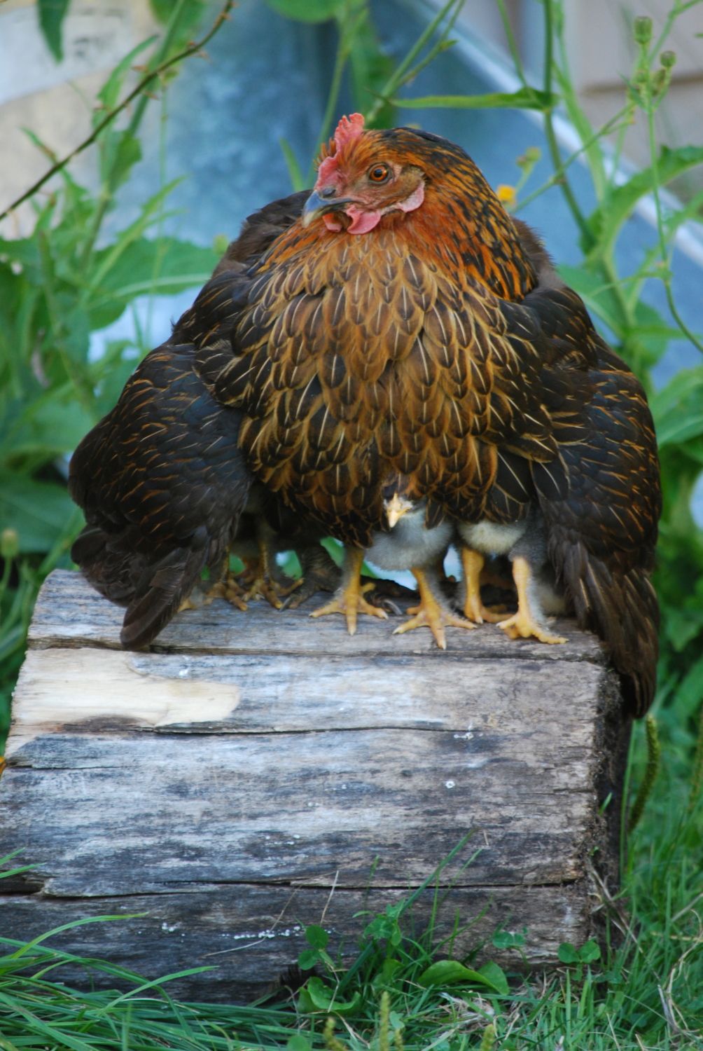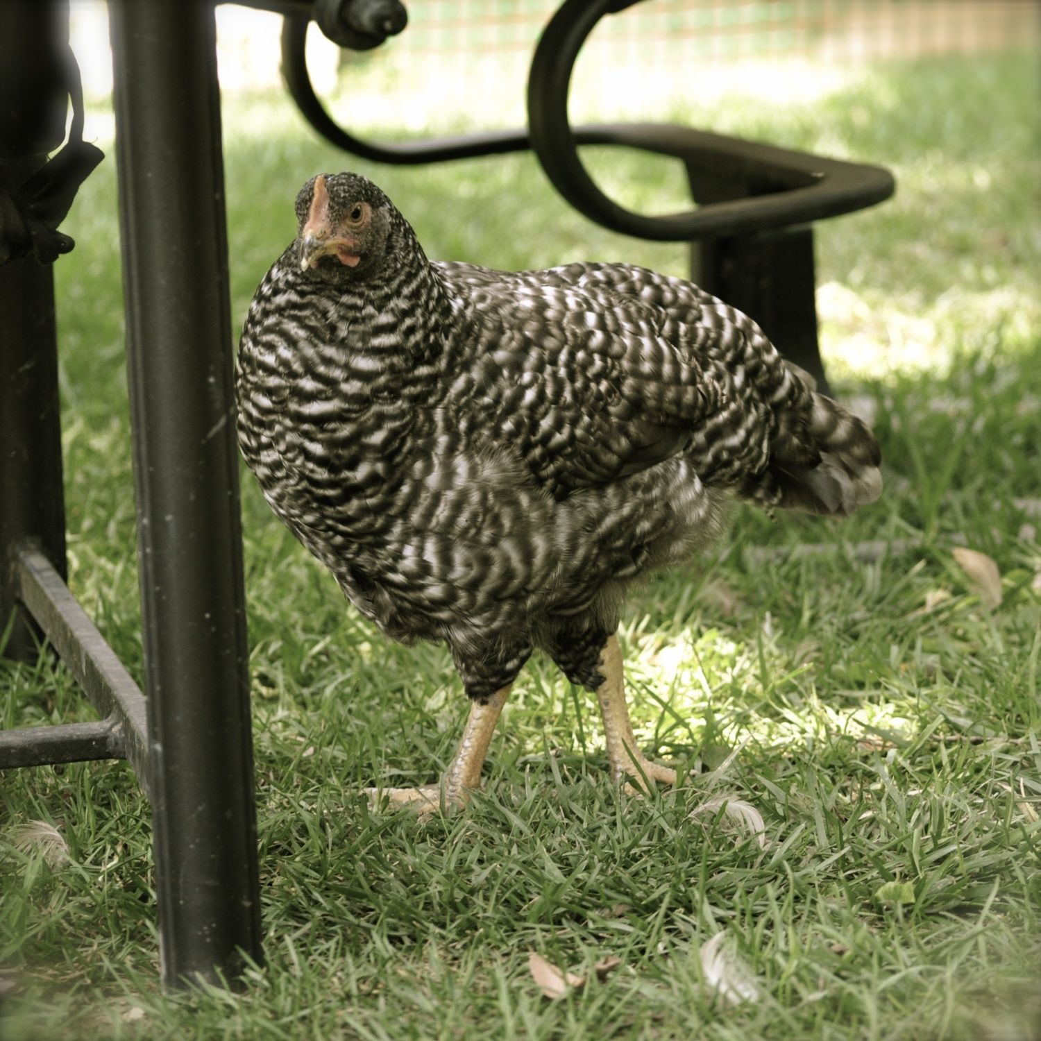 Top pic is one of my 9 week old rare Belgian Cuckoo Malines cockerels. Below is my black star broody Goldie, who hatched out a new batch of these Malines chicks this year.