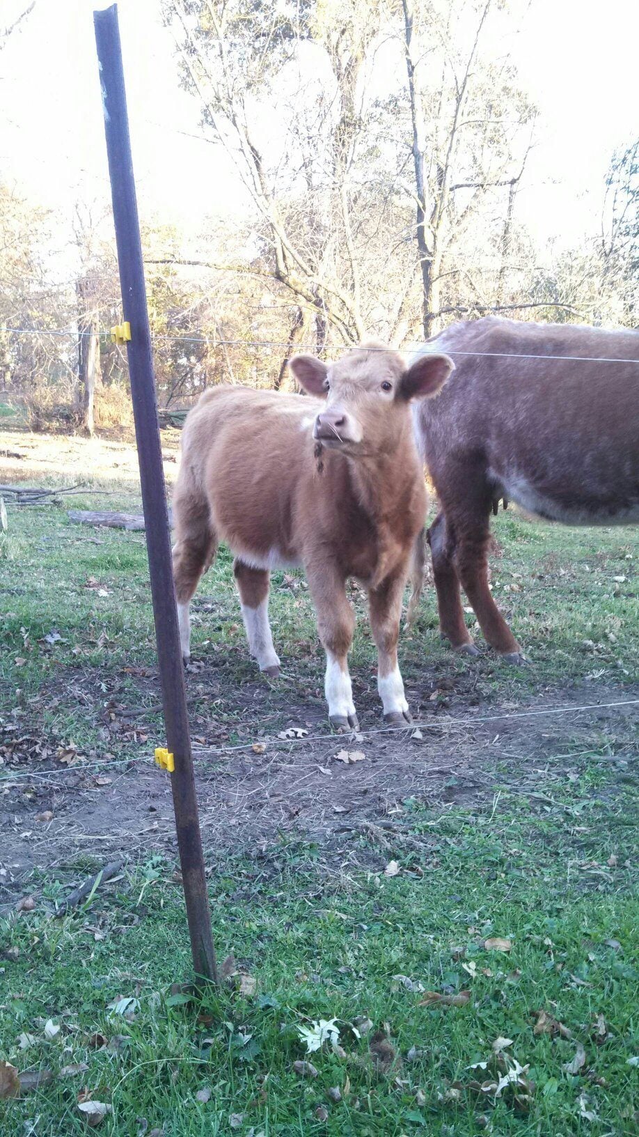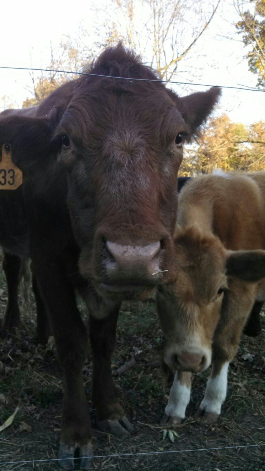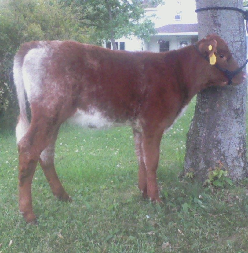 This is Granite's Promise and her calf Surprise. Granite's Promise February 19, 2013. Surprise April 5, 2014. I bought Promise when she was 9 months old. Obviously she goes against statistics against cattle even Gelbviehs.