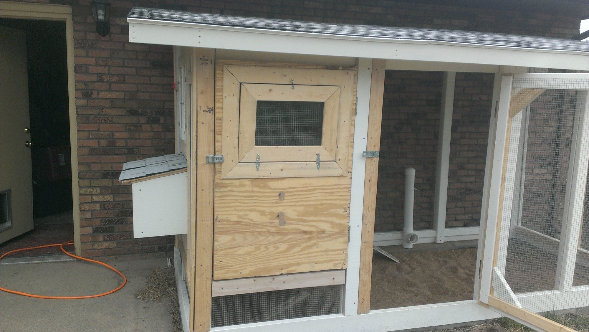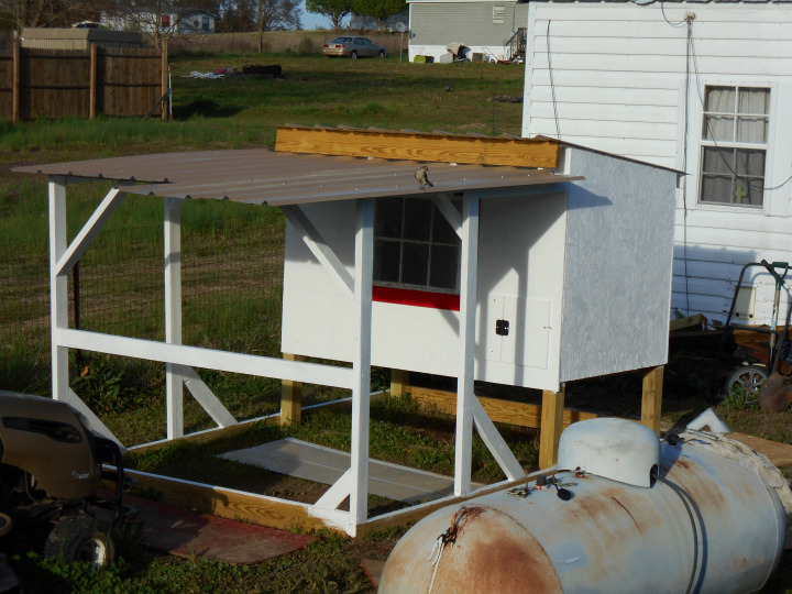 Here's a couple photos from ours just before the last parts got painted. It's an inverted Wichita Cabin Coop with an elongated run.
