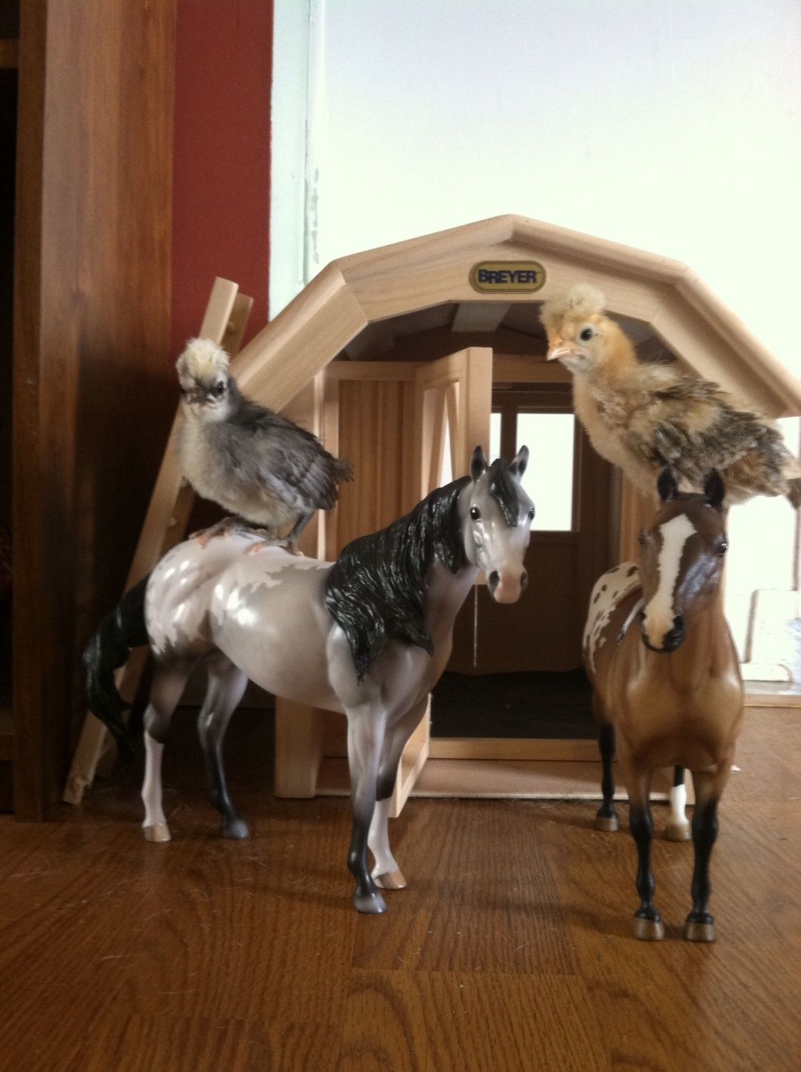 flockofbantsms said: Name: rain and wheaty Breed: white crested polish & self crested polish bantams Age: born march 12/14 Click to expand... Yeeha! Ride 'em cowboy!