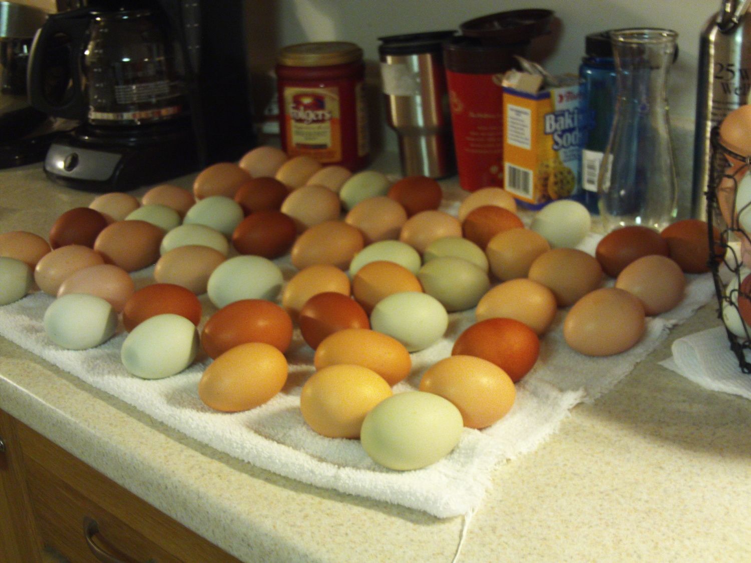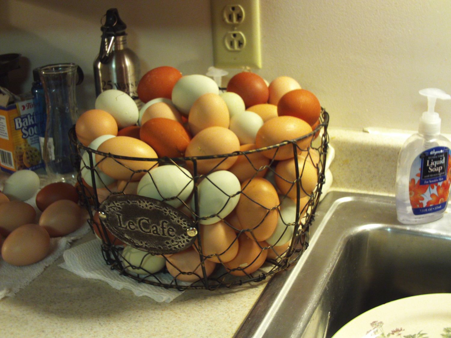 Ooooh beautiful!!!! 20 a day would be heaven to me! LolRight now I wouldn't say my Dels are dual but they've declined since my big roosters have passed on. I will get them back up though. My Birchens are very nice, and I've a nice size EE roo too. My BR's are good size but have never been good layers. I think it's hard to judge these days. Of course on the farm you snagged who ever for Sunday dinner, so you had to keep a lot of birds.The CR's are also good size and seem to be laying nicely of late. I think the stress of over crowding affects how well they lay too. I also think some birds don't do well if confined. My Dels are okay but the Birchens and BR's are not. They want out. Right now I could eat a few and still have plenty of eggs. This doesn't include the 20 from today.